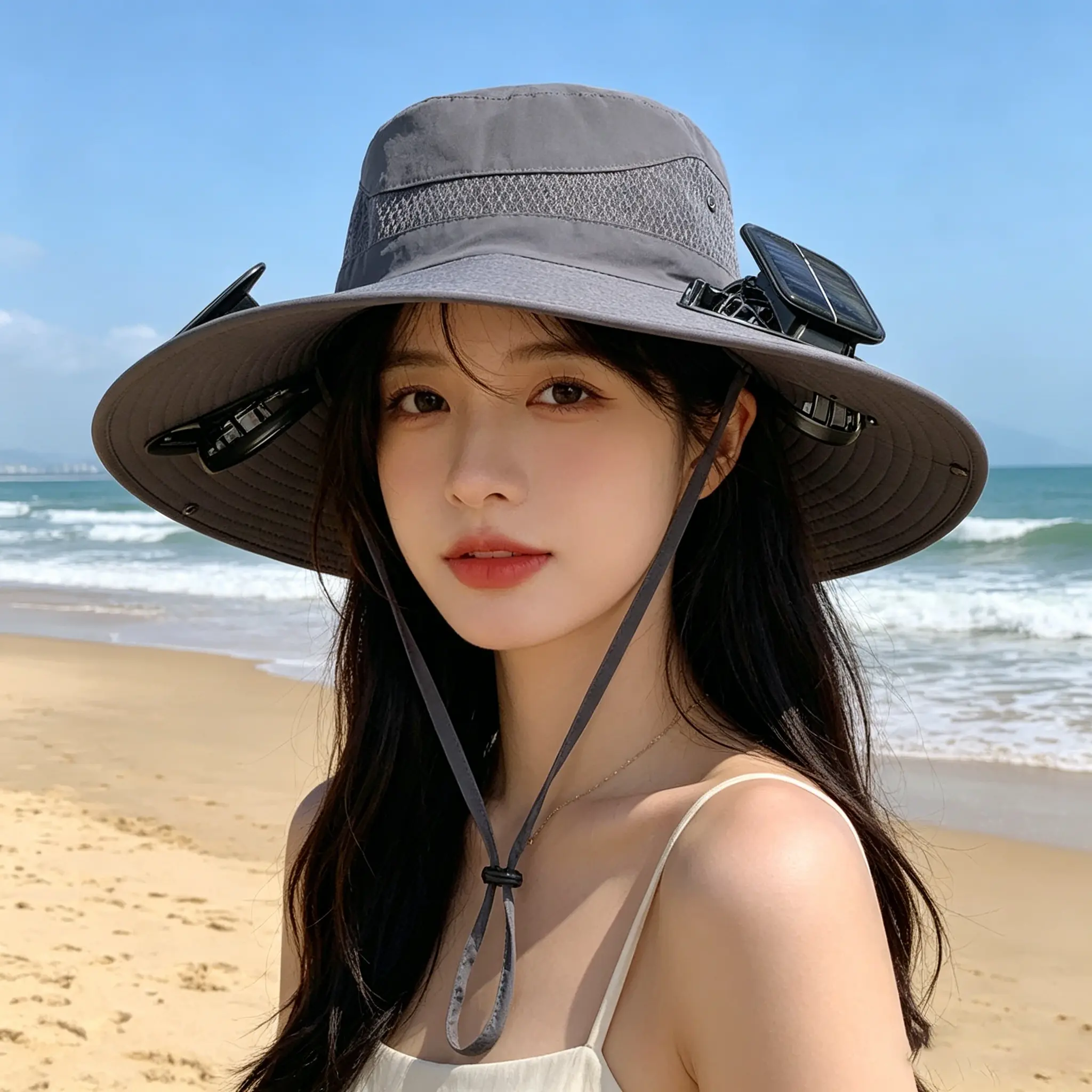 DX sport Solar fan hat Mens Wide Brim Solar Fan Hat Outdoor 50+Upf Protection Sun Hats With 2 Solar Fan Hiking Fishing Solar Powered Visor Cap Dropping