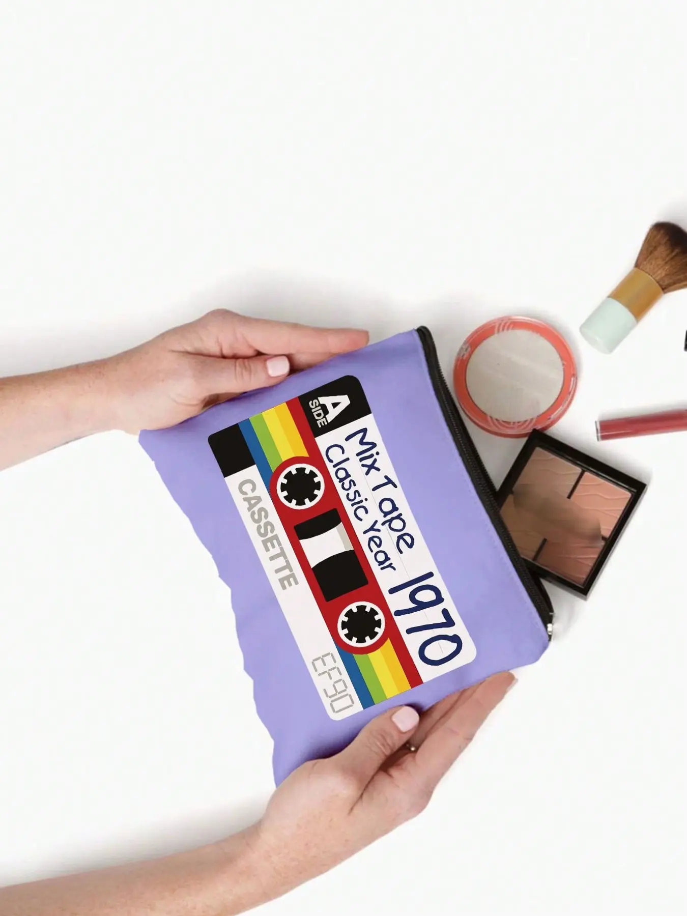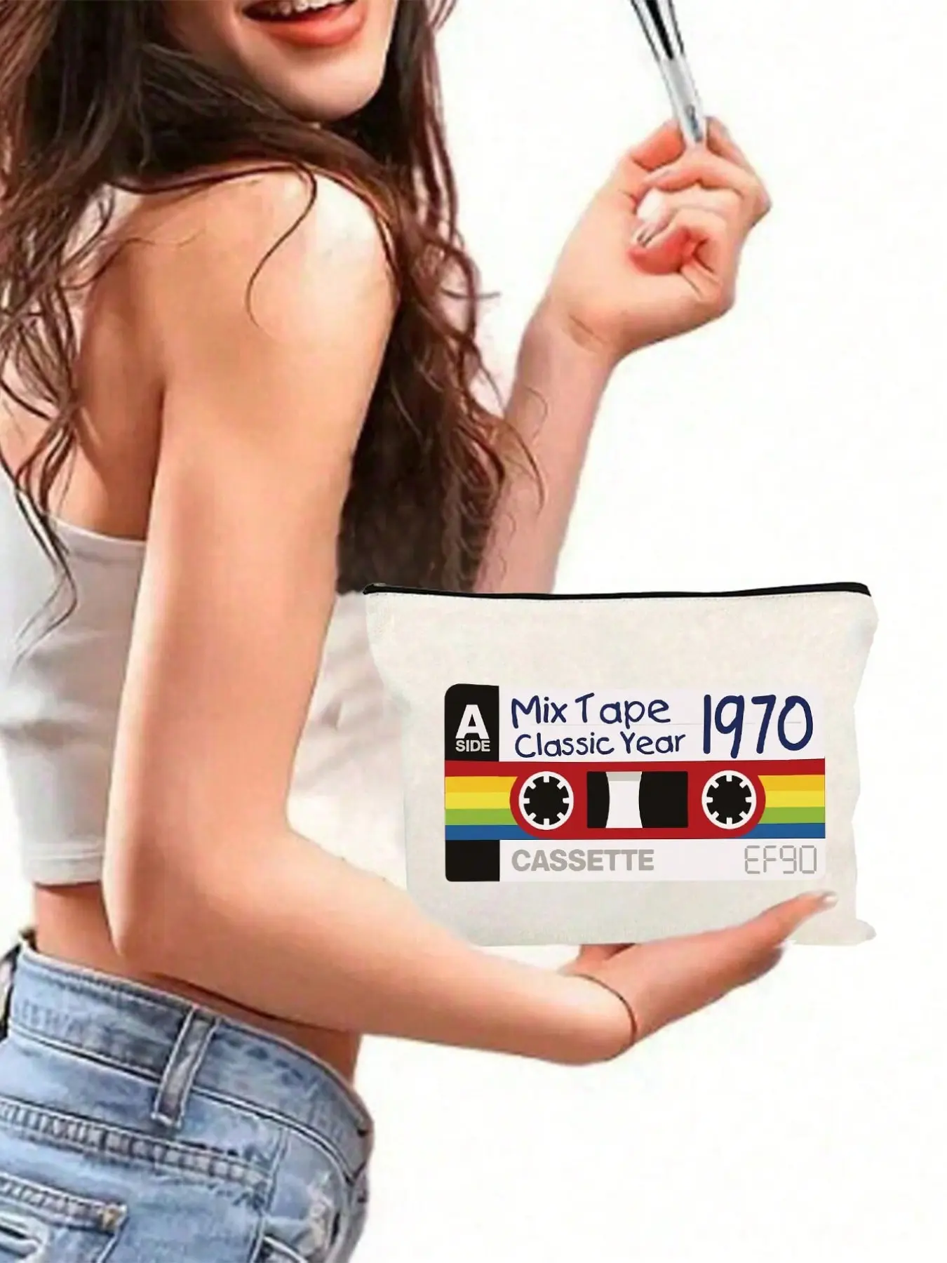 Vintage Tape Pattern Makeup Bag, Reusable Travel Organizer, Portable Vanity Case, Perfect Gift for Music Lovers, Multifunctional Storage
