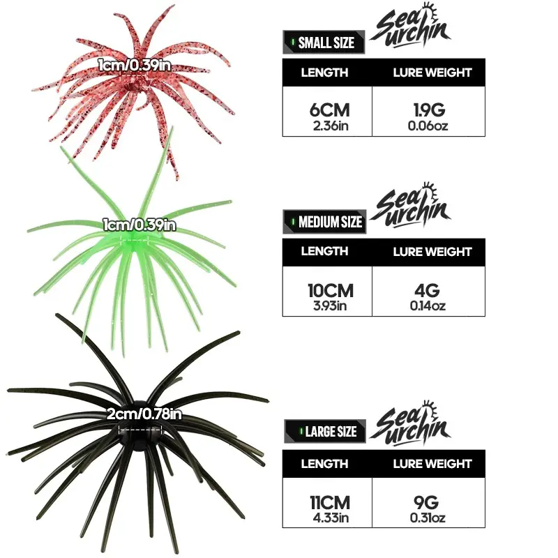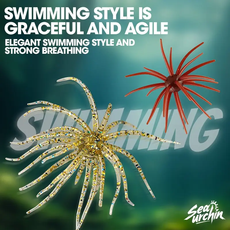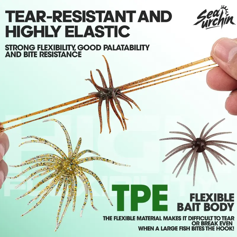 TAIYU 2-Pack Sea Urchin Soft Bait for Bass Trout Fishing, Floating Biomimetic Soft Lure, Tpe Artificial Fish Attractant, Fishing Lures, Floating Swimming Lures
