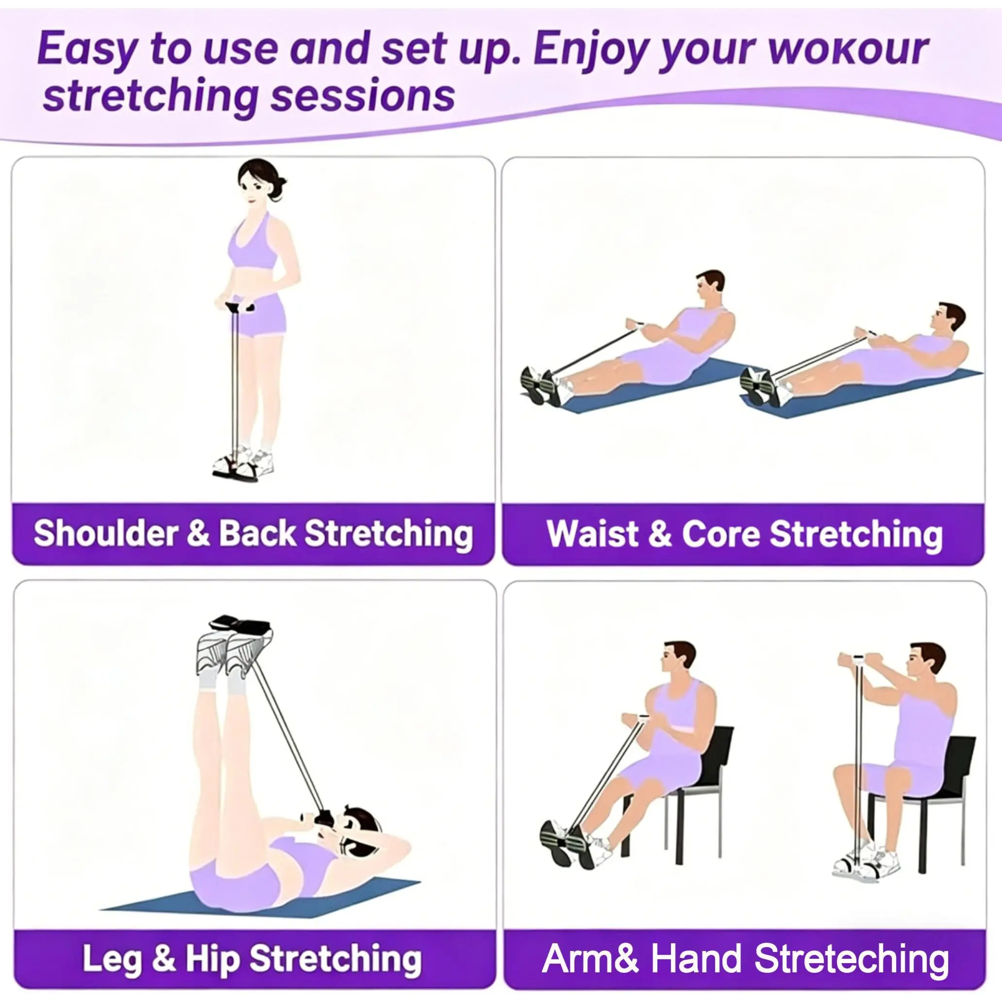 This portable elastic tube is perfect for home use and daily activities. Crafted from latex material, it offers a lightweight design that's easy to carry. The dual grip feature ensures a comfortable and secure hold. Ideal for simple exercises, it supports your feet for added stability. Choose between purple or pink for a stylish touch.