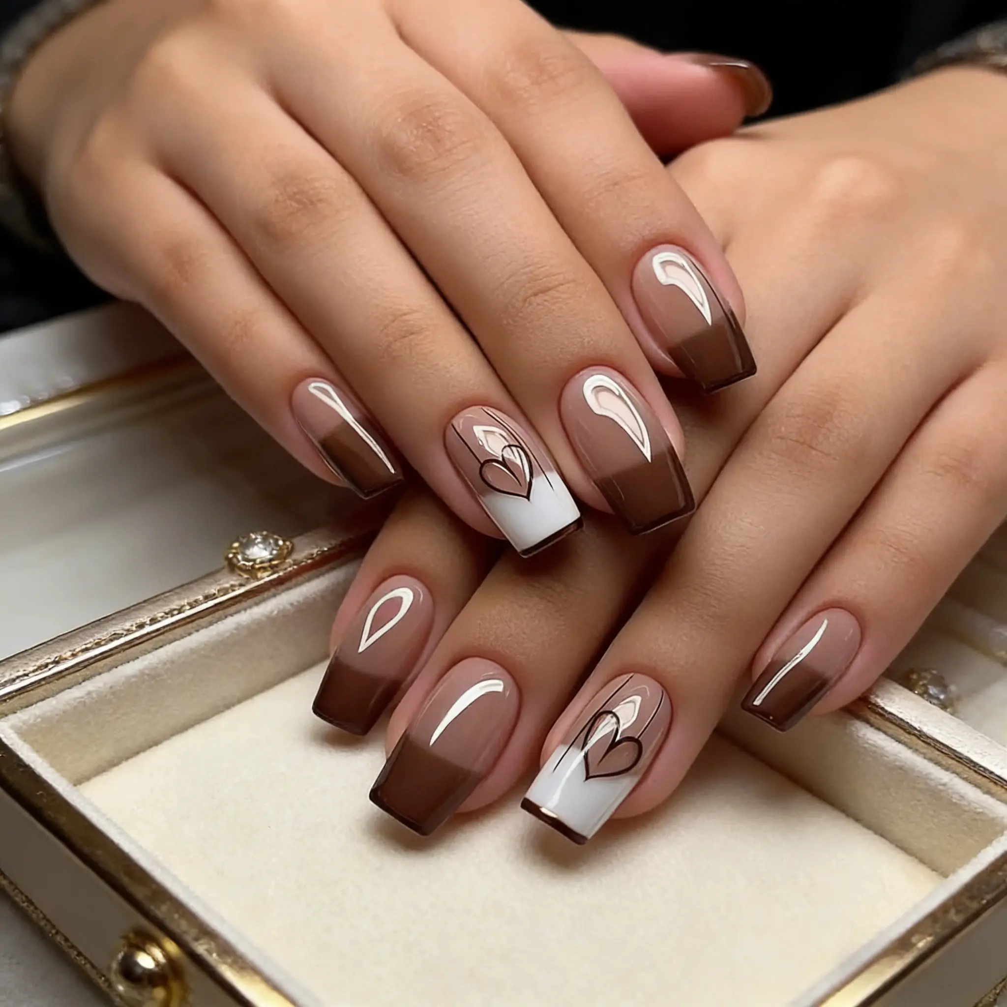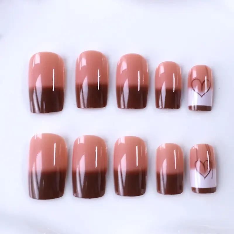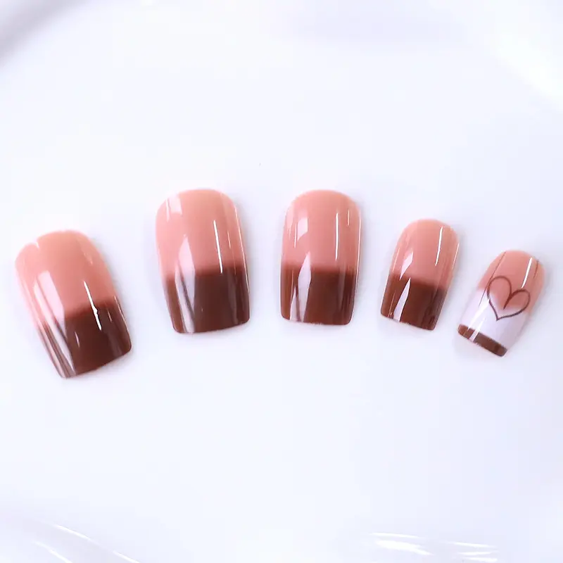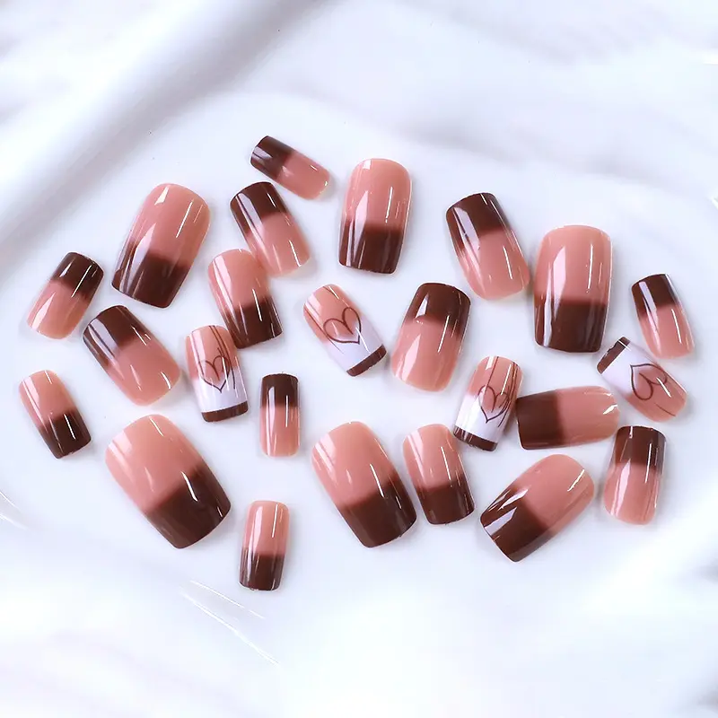 24 pieces of adorable gradient heart-shaped wearable nail art, with a glossy finish covering the heart-shaped design. Suitable for women's daily use elegant fake medium square new Dark glitter classic french manicure diverse style Press-On sweet cute
