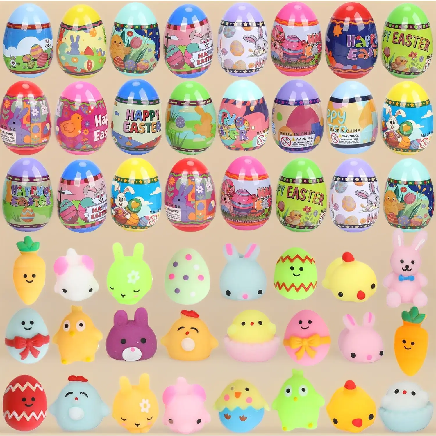 24Pcs Easter Prefilled Eggs with Mochi Squishy Toys, Animal Stress Reliever Squishy Toy for Easter Theme Egg Hunt, Kids Party Favor, Basket Stuffers Filler, Classroom Prize Supplies Kids Outdoor Play