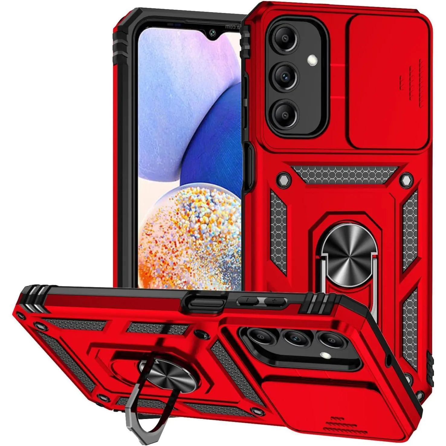 SunStory Phone Case for Samsung Galaxy A15 5G Case with HD Screen Protector & Slide Camera Cover & Rotated Ring Kickstand, [Military-Grade] Phone Case for Galaxy A15 5G (Red)