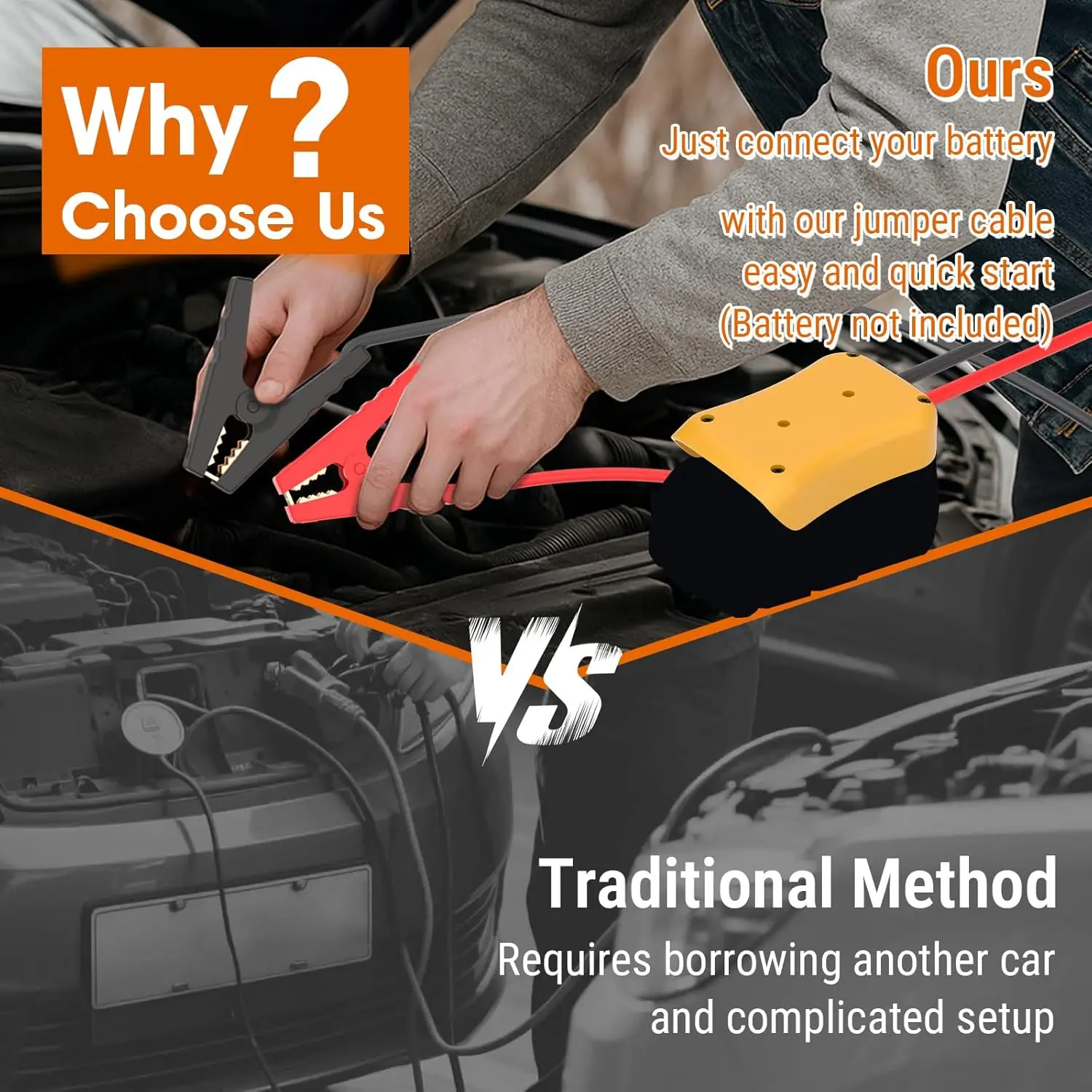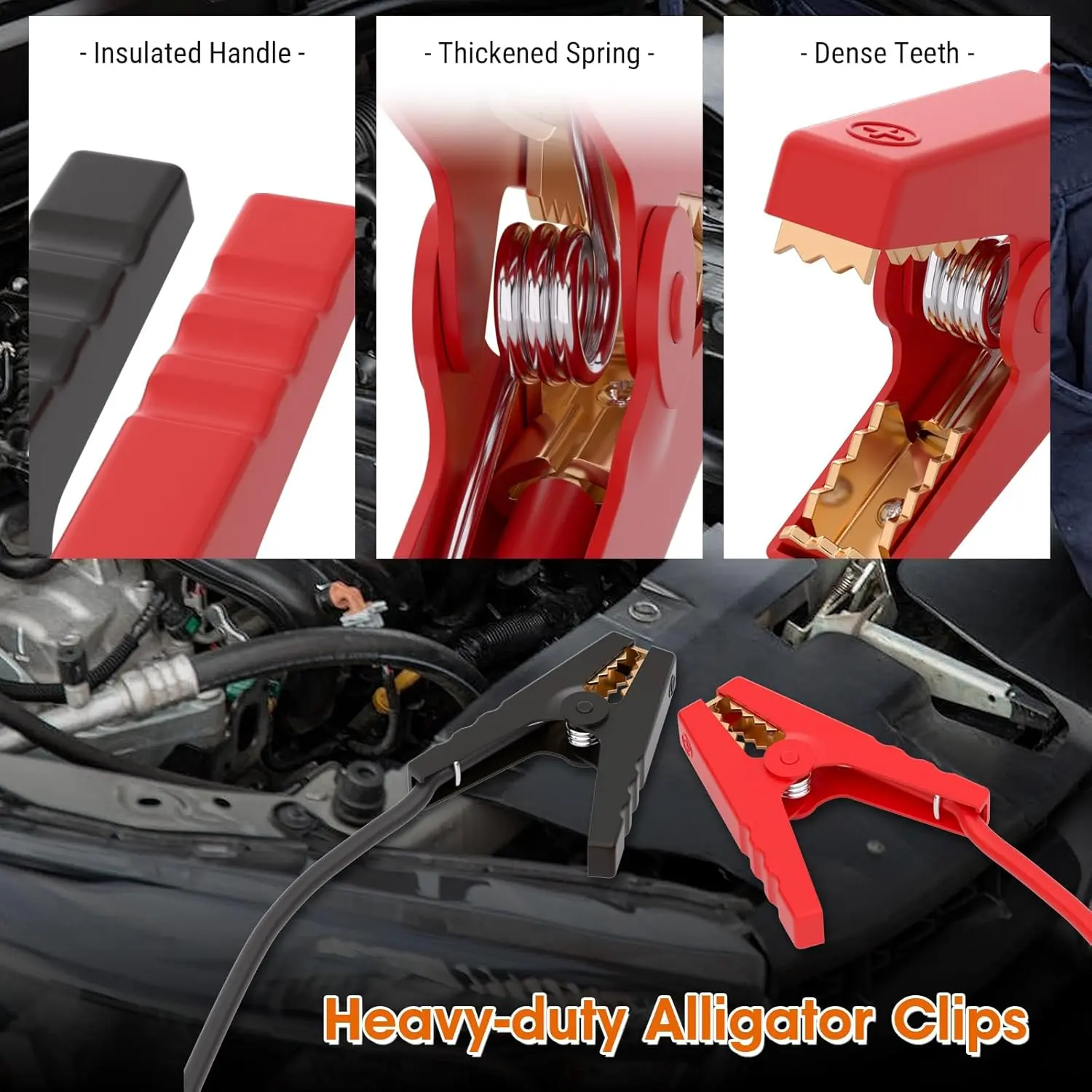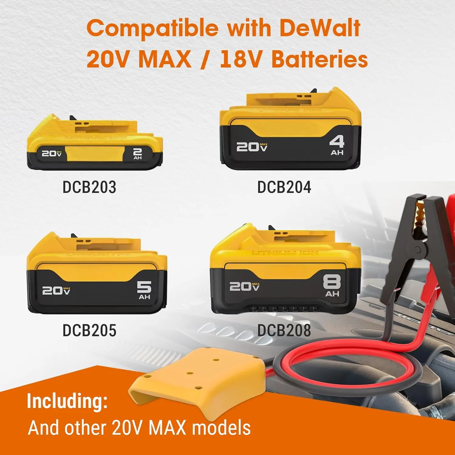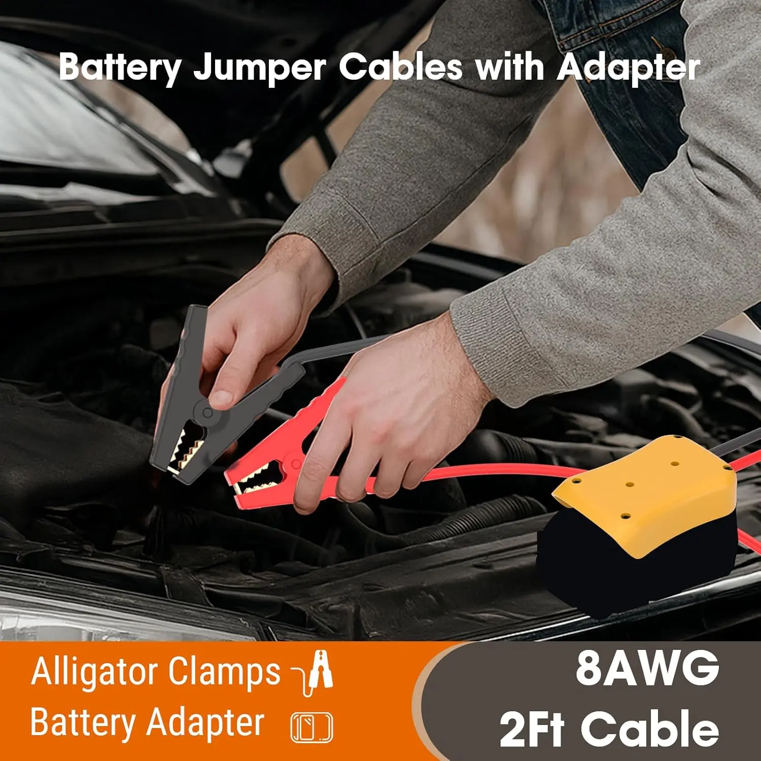 8AWG 2FT Silicone Jumper Cables for Car, Heavy-Duty Jump Starter Adapter Compatible with DE.Walt 20V Batteries, Alligator Clips for Jump Starting Vehicle or Tool Batteries