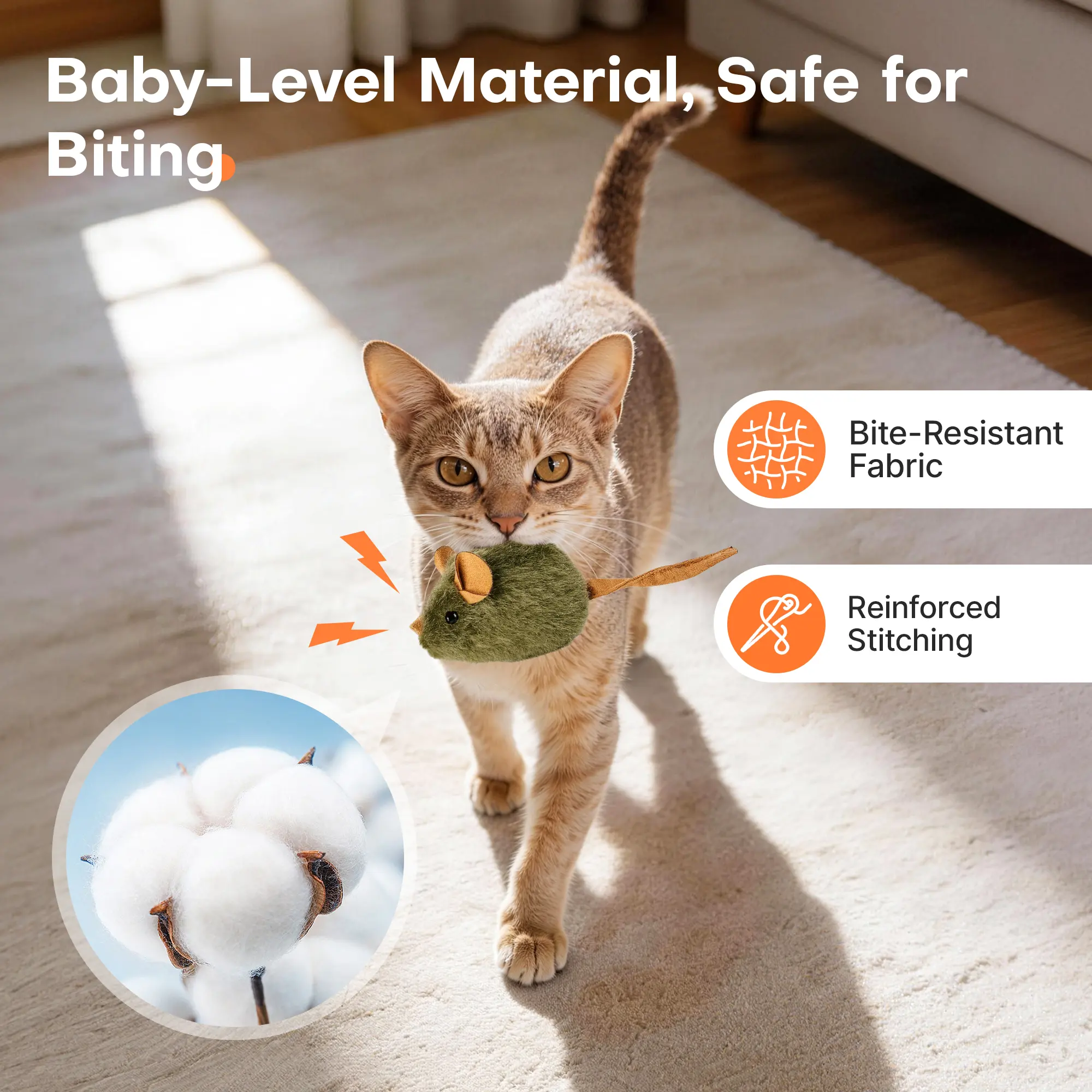 With lifelike plush texture and soft, prey-like squeaking sounds, these toys effectively activate your cat’s natural hunting behavior. They encourage active play such as chasing, pouncing, and jumping, helping your cat stay energetic, focused, and mentally stimulated.