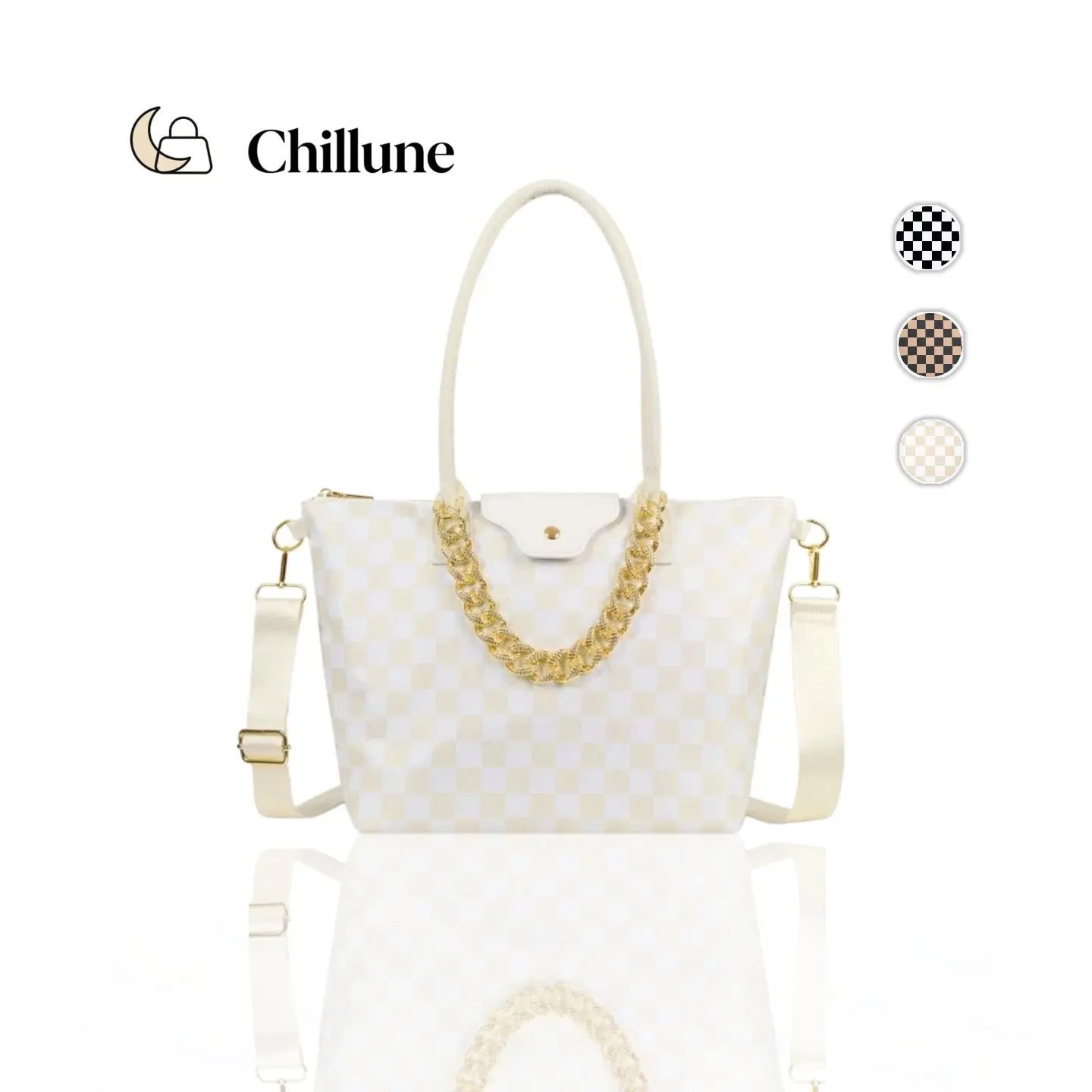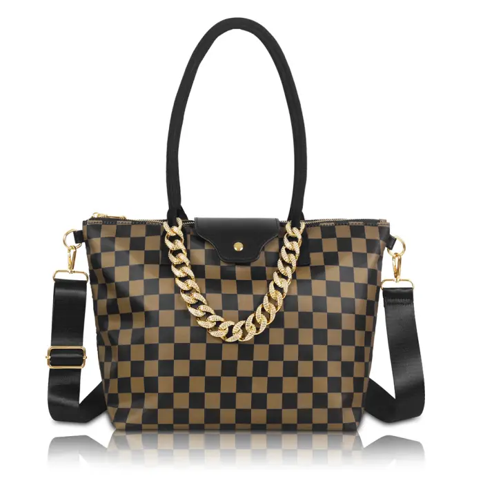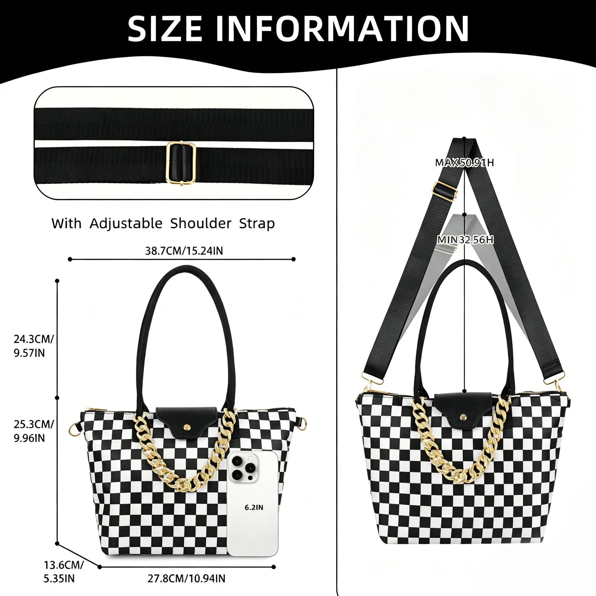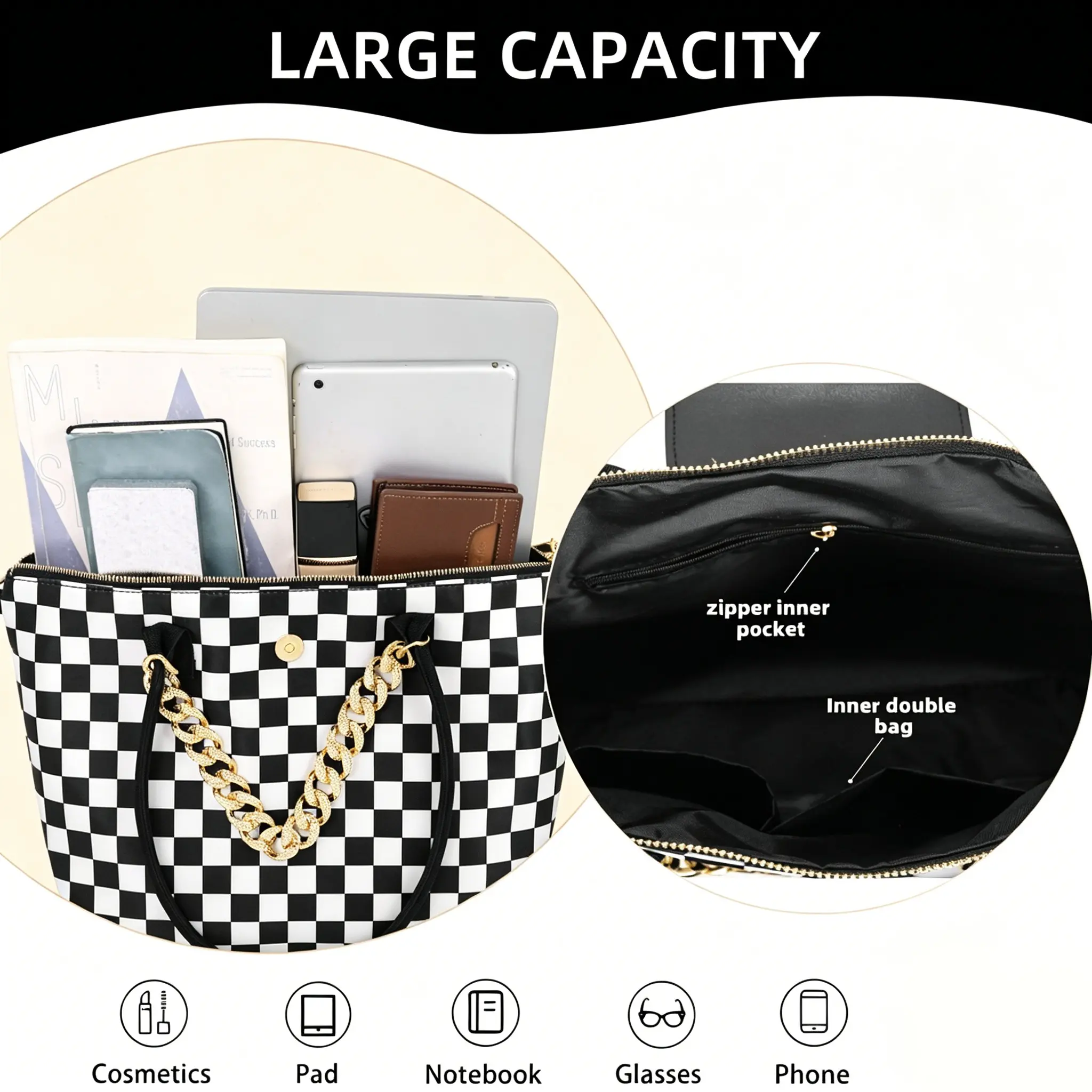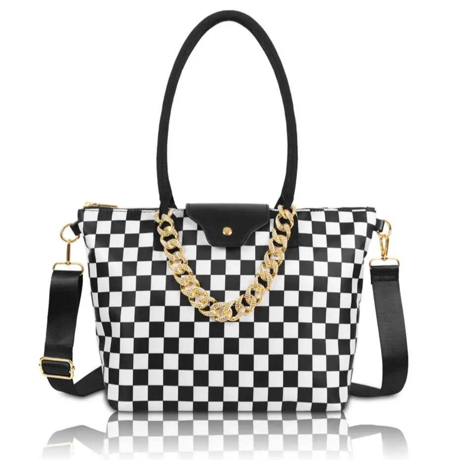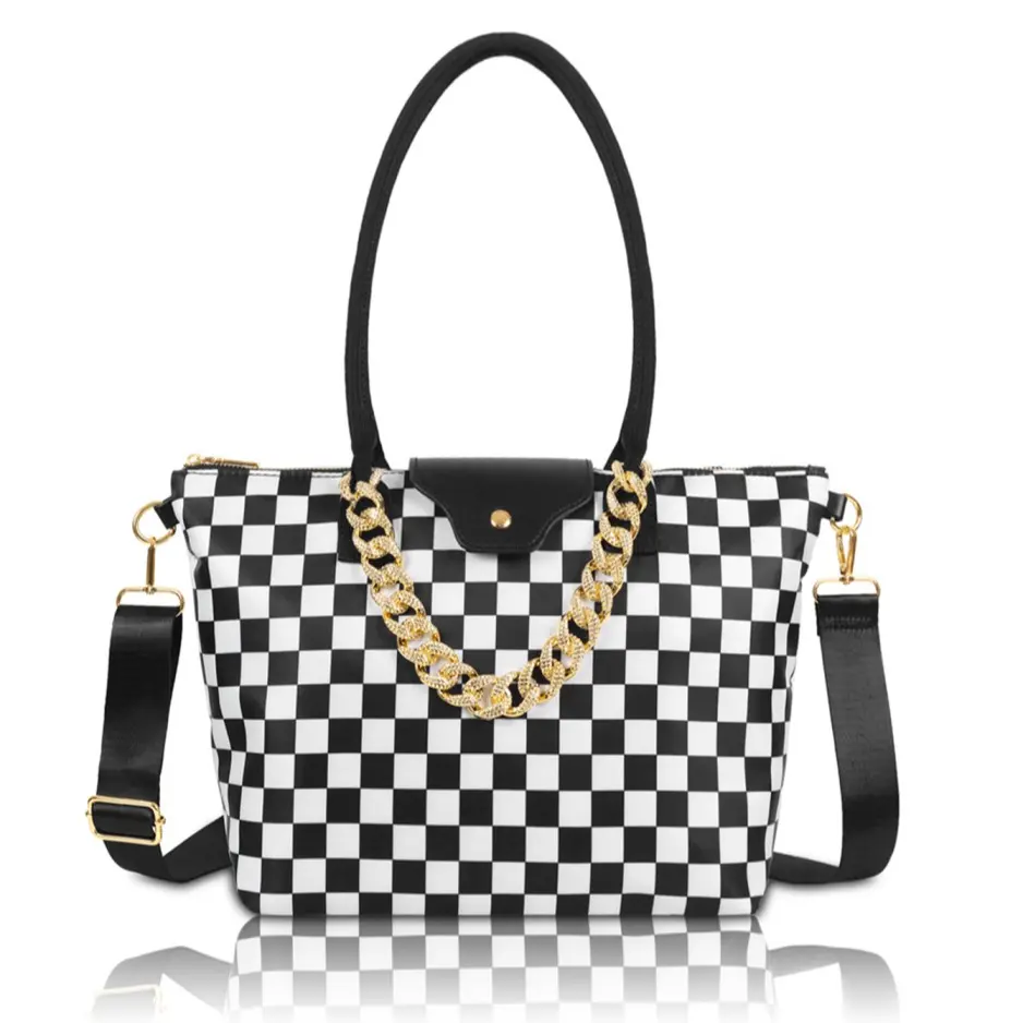 Checkerboard Oxford Crossbody Tote Bag for Women – Lightweight Fashionable Bag with Smooth Zipper