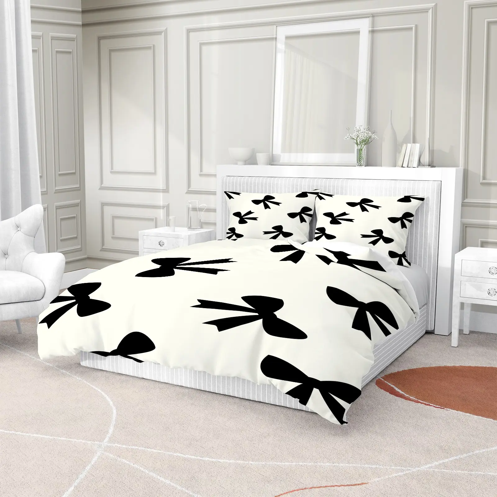 2/3 Pcs Cute Bowknot Duvet Cover Set, Pastel Ribbon Bedding Set for Girls Bedroom, Elegant Warm Gift for Women, Filling Not Included
