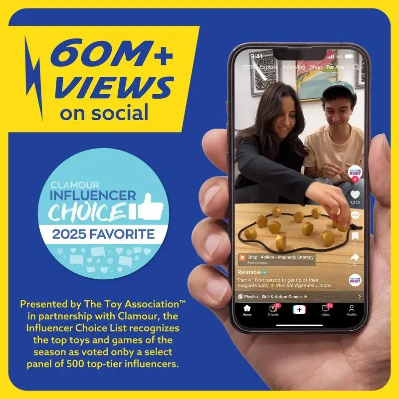 Put your steadiness and magnetic skills to the ultimate test! Kollide is a competitive two-player strategy game where competitors hurry to place all their magnets with no contact between them. Should the magnets attract and snap together, you must restart the challenge! This viral TikTok sensation is ideal for family game nights, couples, and anyone who enjoys games requiring concentration, dexterity and anticipation. Simple to pick up yet challenging to perfect, it delivers entertainment for players aged 8 to adults. Approved for game night fun, Kollide is designed for families of all sizes and truly puts your magnet-handling abilities to the test. This engaging strategy game helps sharpen your abilities and deepen your understanding of strategic gameplay. It serves as a wonderful Easter present and a great non-candy Easter basket filler. As recommended by gaming enthusiasts, this tabletop game guarantees endless laughter, bonding and happiness. It is an excellent choice for Easter gifts for kids and springtime family gaming activities. Product Dimensions: Length x Width 7.85" L x 2" W