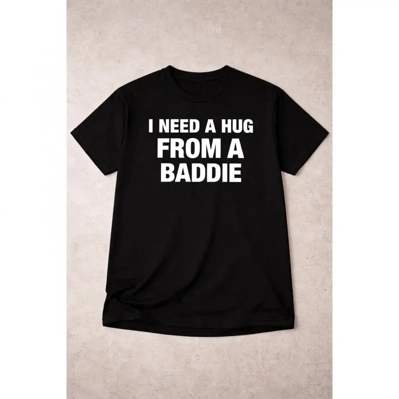 This trendy TLXT graphic tee features the bold, playful slogan "I NEED A HUG FROM A BADDIE" for a fun, confident, and eye-catching street style. Designed with a classic crew neck, soft short sleeves, and a relaxed unisex fit, it’s lightweight, breathable, and perfect for everyday casual wear, hangouts, summer outings, parties, and social media-worthy looks. The high-definition print is long-lasting, resistant to fading, and easy to care for with machine washing. A must-have funny statement tee for anyone who loves bold, modern, and meme-worthy casual fashion.