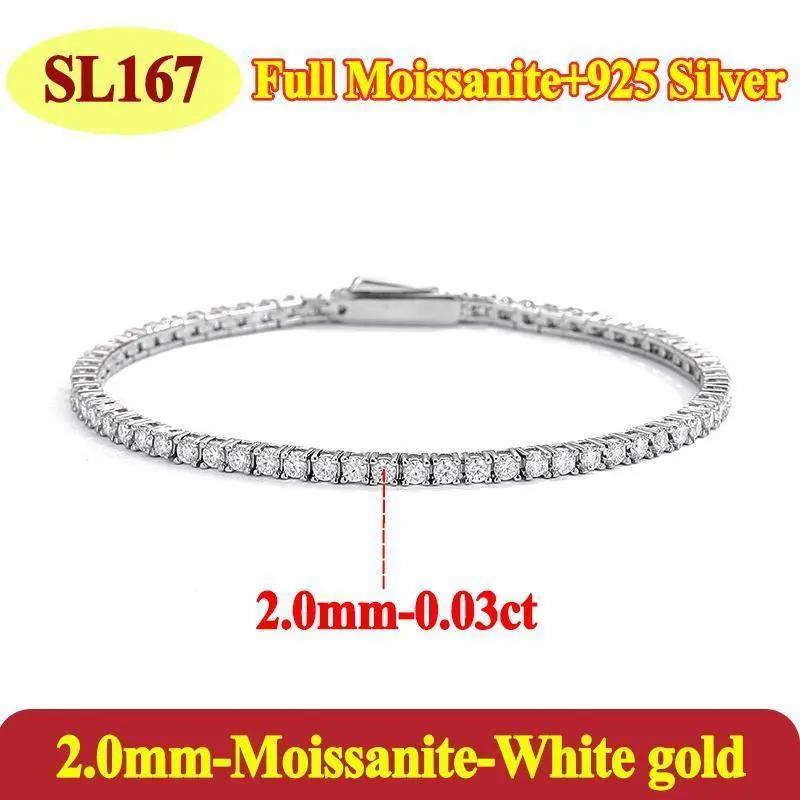 Luxury 2 2.5 3 4 5MM Full Moissanite Tennis Chain Couple Bracelets Plated Gold 925 Sterling Silver Jewelry Gift GRA Certified