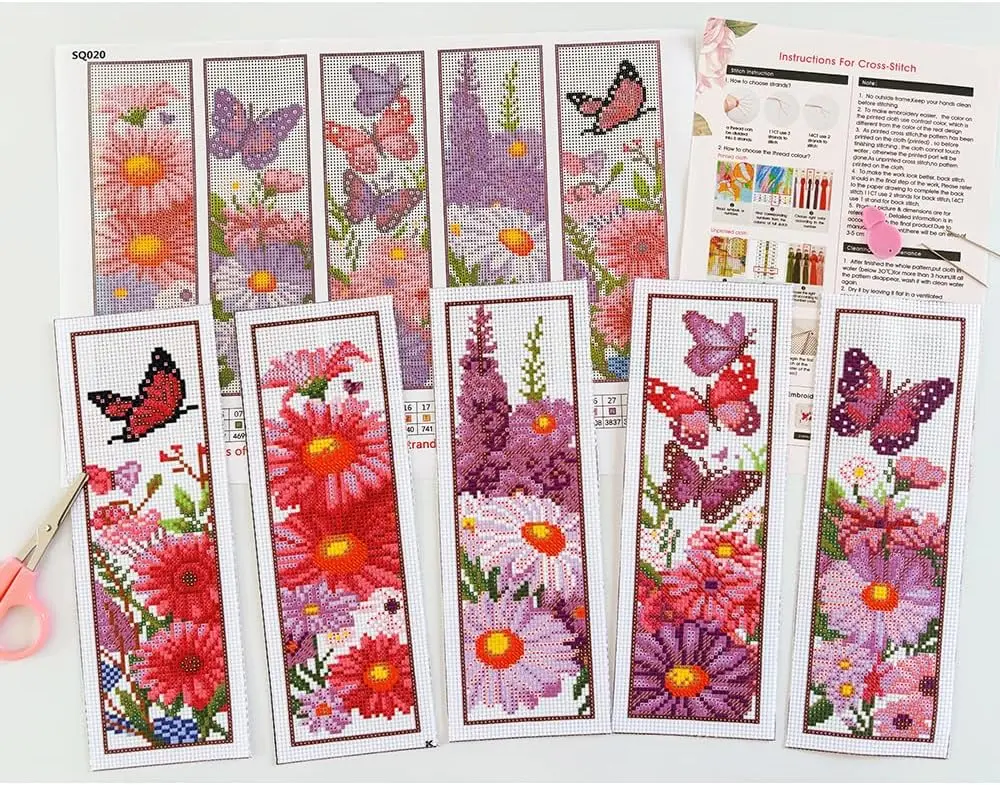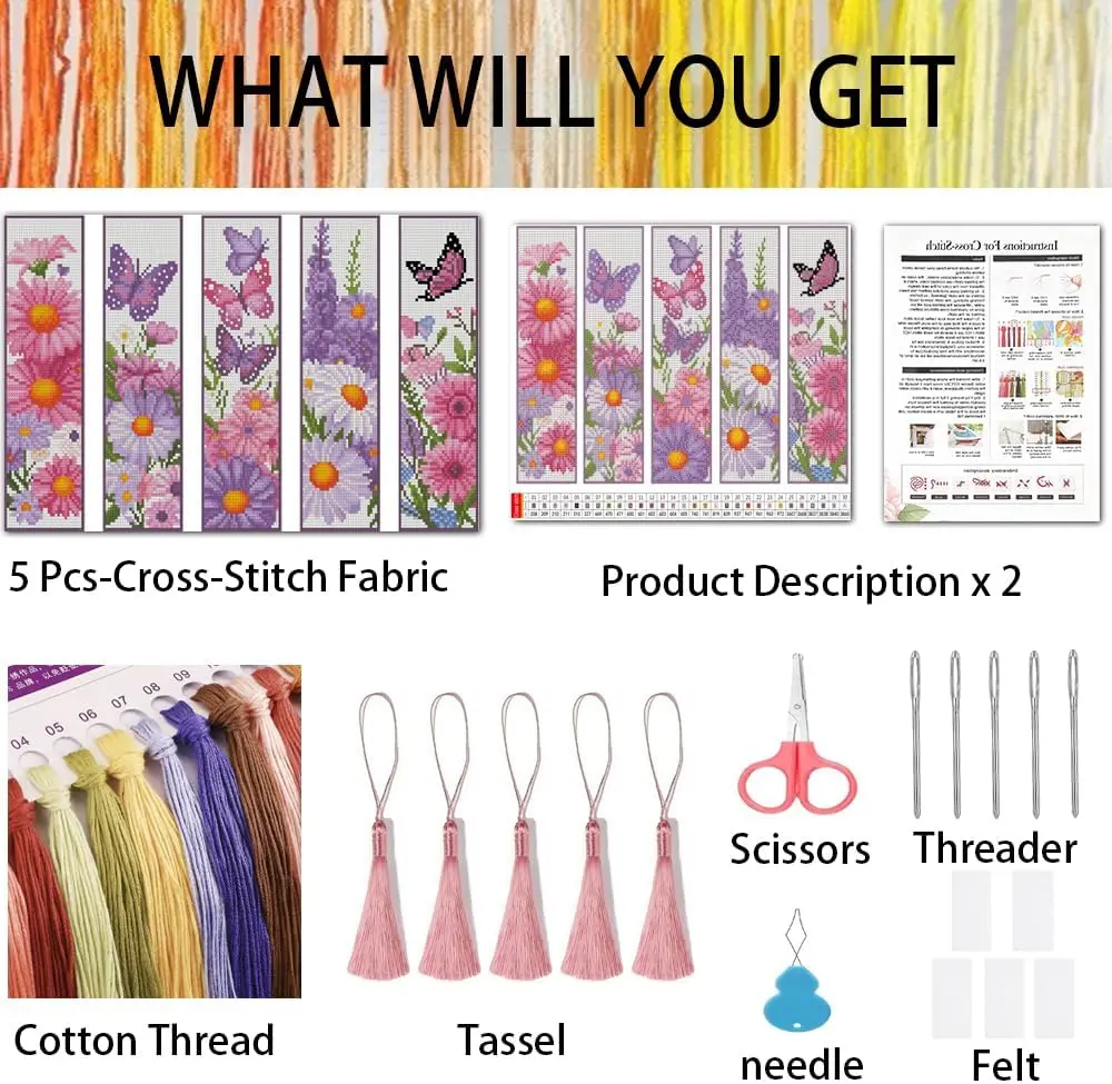 ·【Cross Stitch Bookmark Kits】You Will Get:14ct Pre-Printed Cotton Fabric X1 Set,Cotton Threadx1set,Scissorsx1, Threaderx1, Needlex5,Product Descriptionx1,Product Drawingsx1.