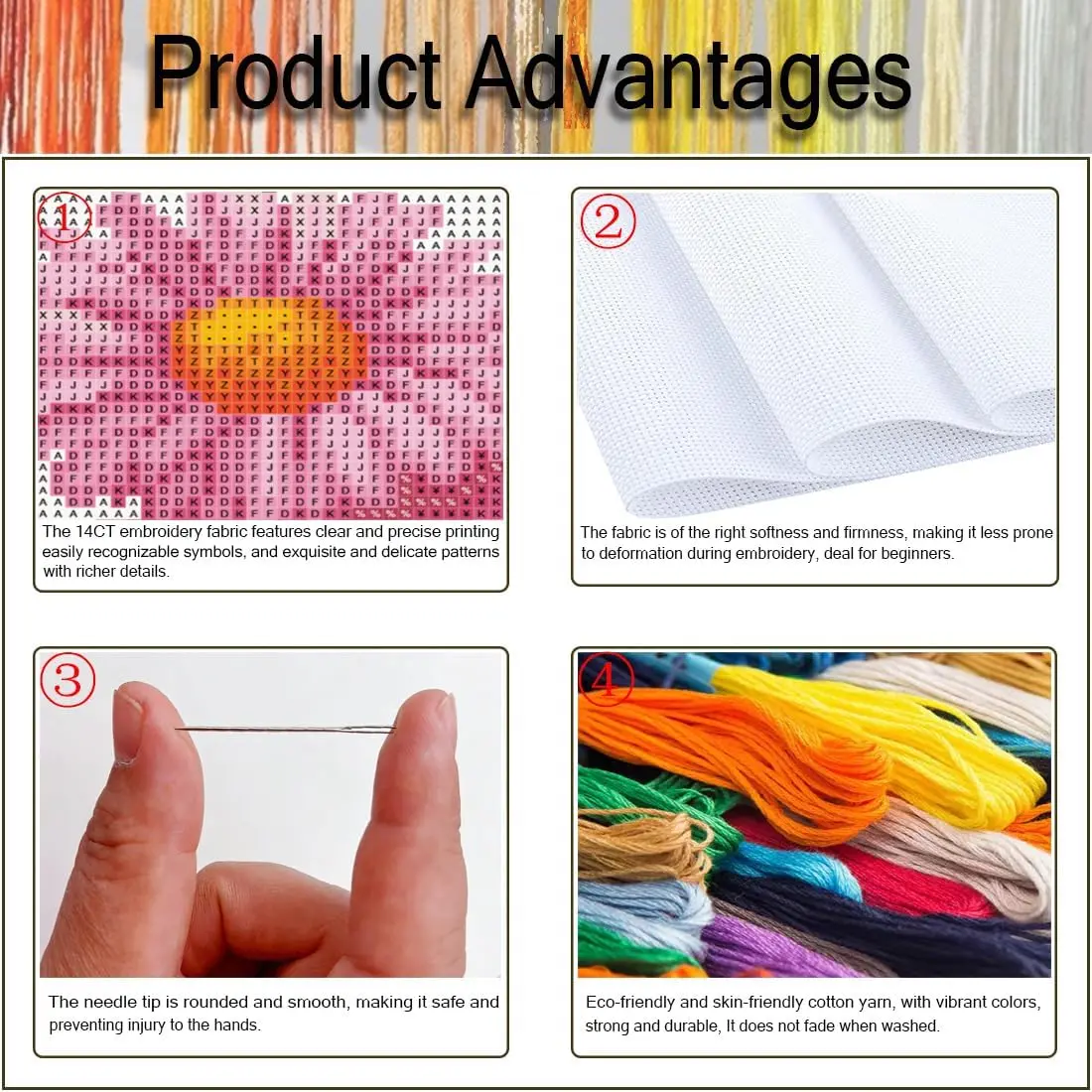 ·【Quality Cotton Thread】 Ecology Cotton Floss That Is More Brilliant In Color And Softer, Finer, More Skin & Eco-Friendly And More Durable Than Ordinary Threads, Together With Exquisite Workmanship, Elegant Style, Smooth Suede, Full Touch, Beautiful Appearance, Soft Gloss, Make Your Cross Stitch More Vivid And Durable Without Fading.