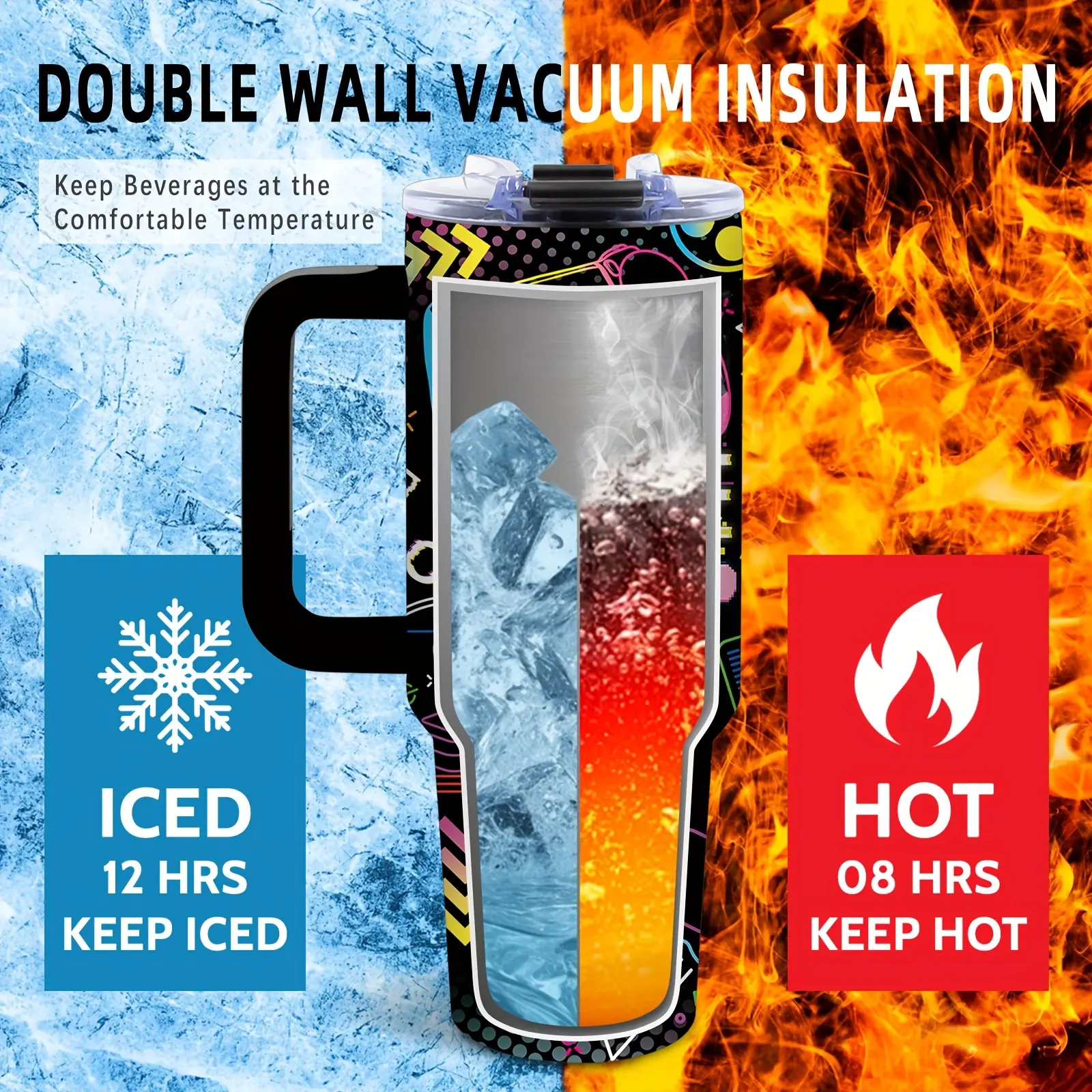 ▶Grab & Go Handle:Features a rugged, comfort-molded handle that makes carrying 40oz of your favorite drink feel weightless.