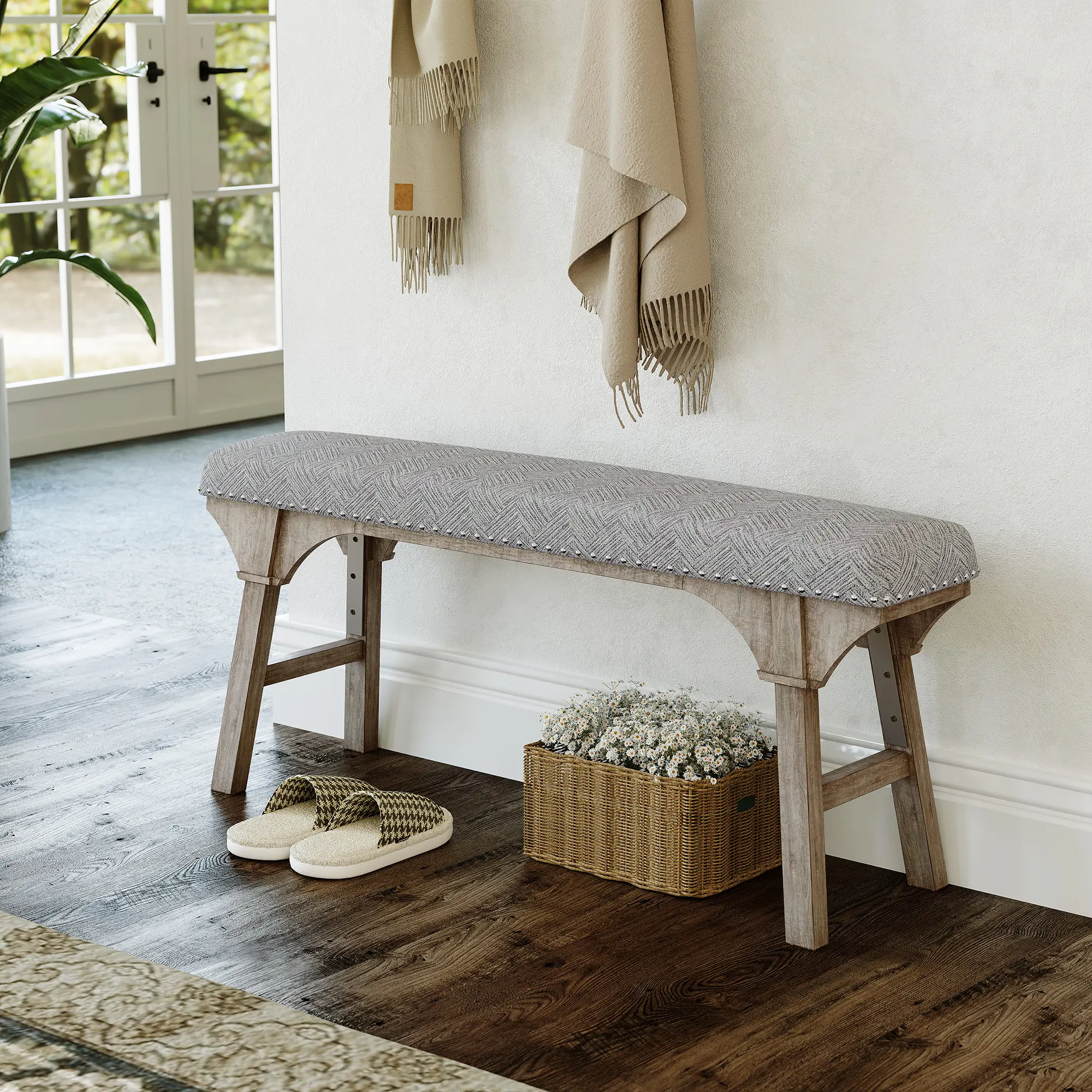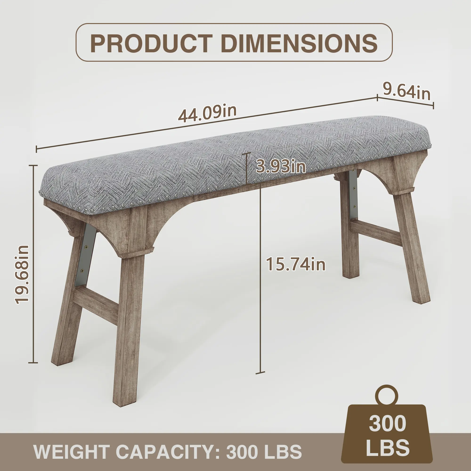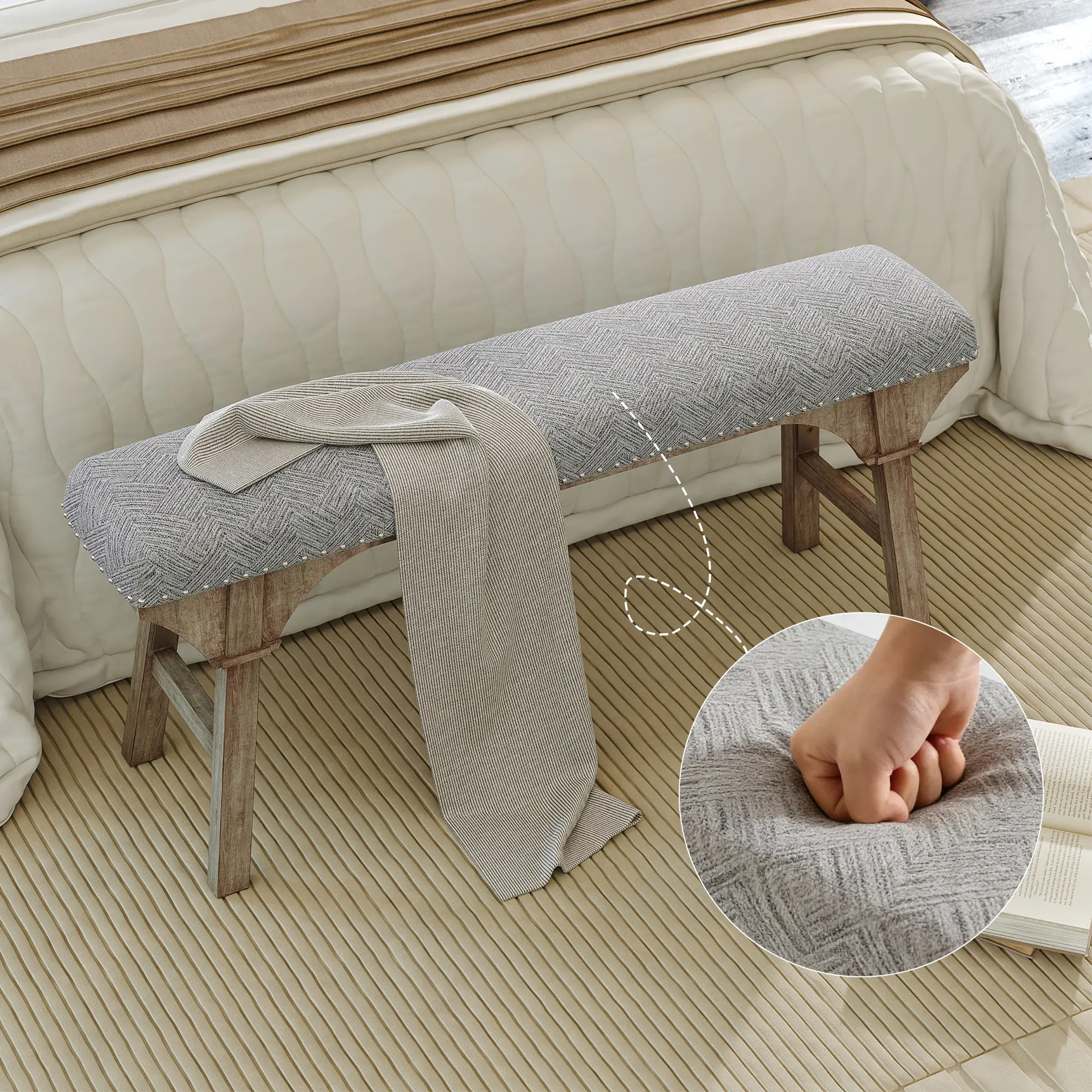 Upholstered Bench, Solid Wood & Nailhead Trim, Home Finds, Room Decor, Cozy Vibe, Versatile Seating for Family & Guests, Rustic Farmhouse Style, Entryway Dining Room Bedroom, Breathable & 300LBS Sturdy