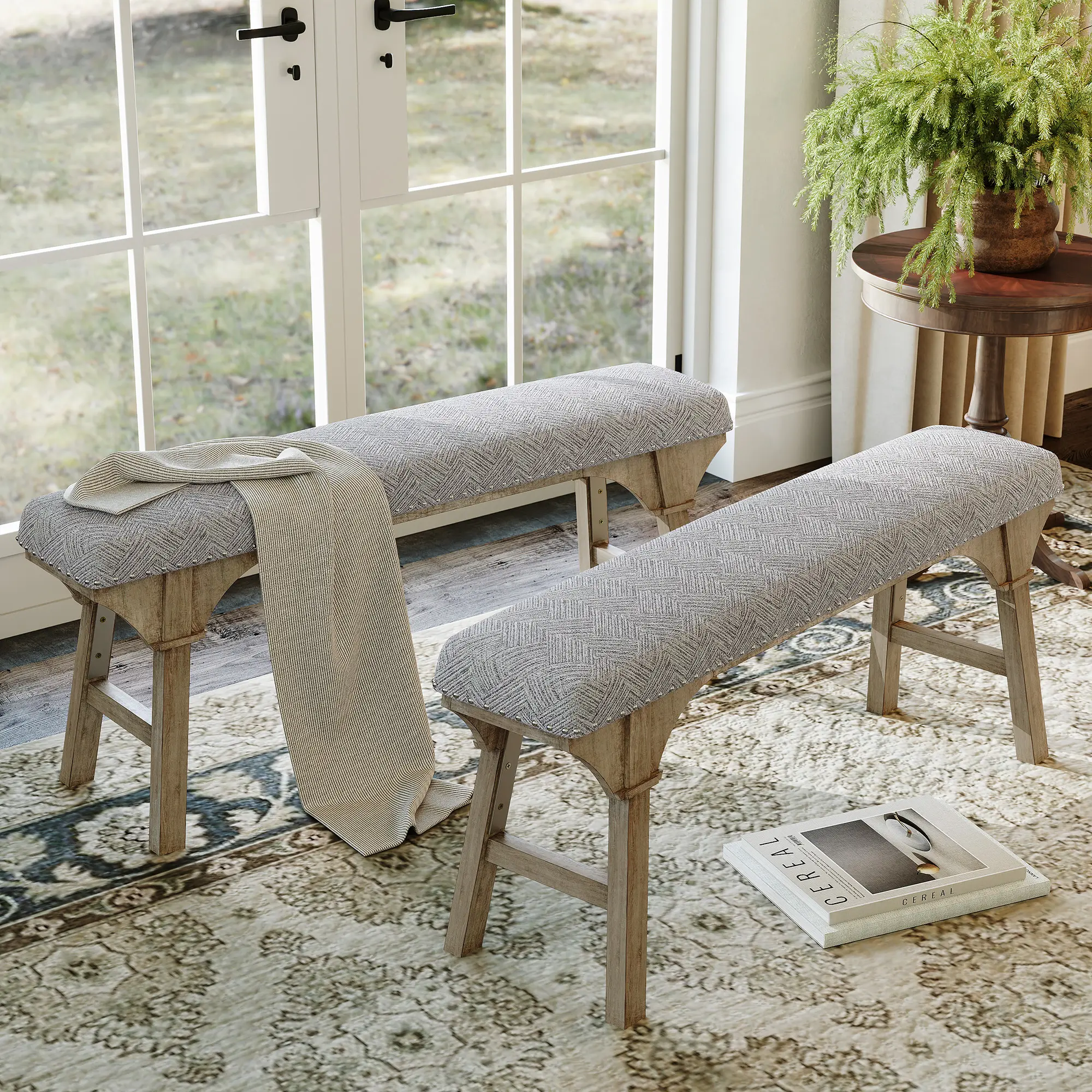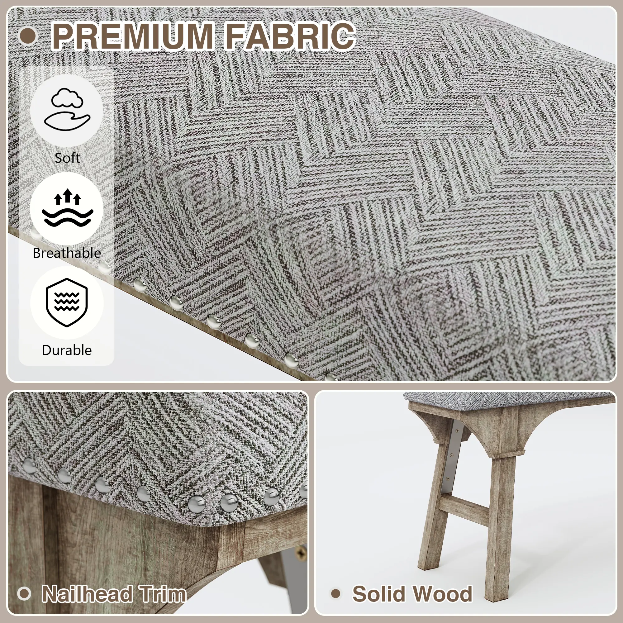 【Rustic Farmhouse Design + Nailhead Trim】 Elevate your home decor with timeless charm! – Chic herringbone fabric paired with elegant nailhead trim adds a sophisticated farmhouse touch to your space. – Neutral gray tones blend seamlessly with your existing furniture, instantly upgrading your room's aesthetic.