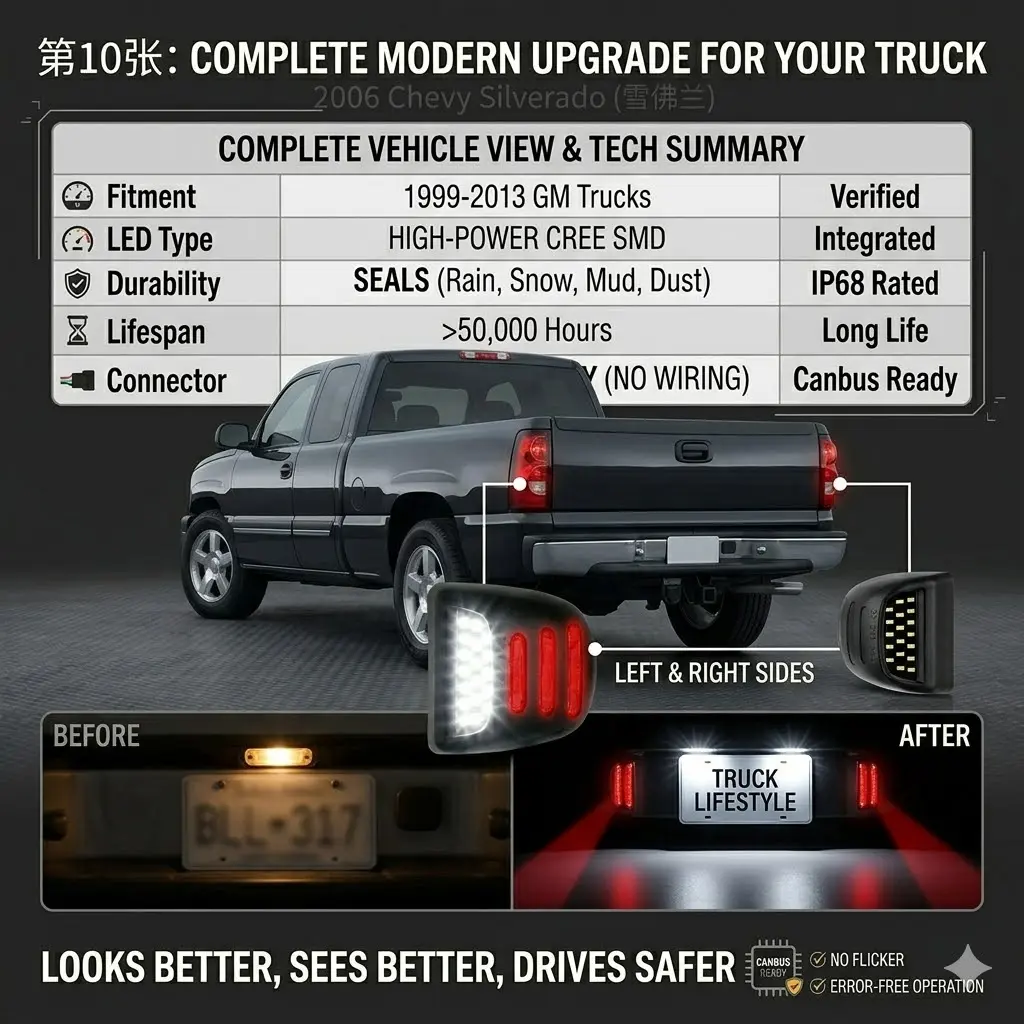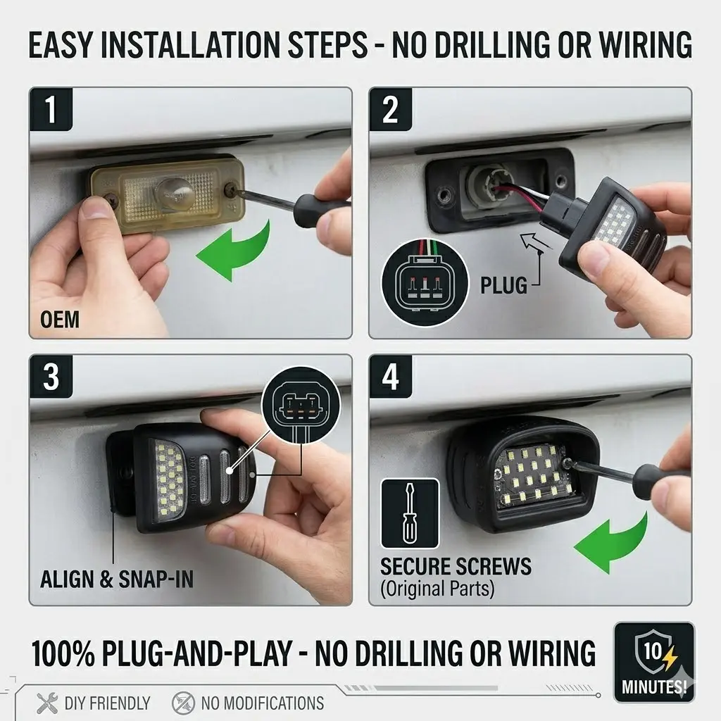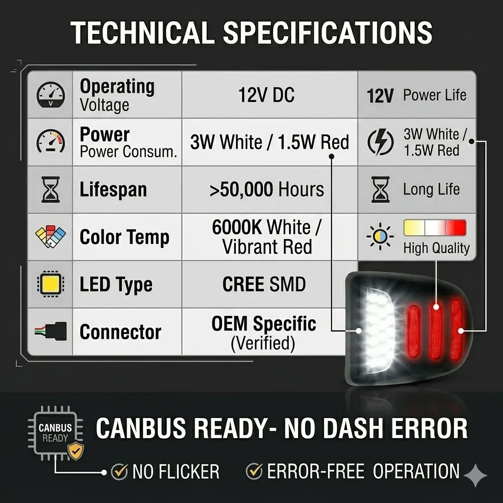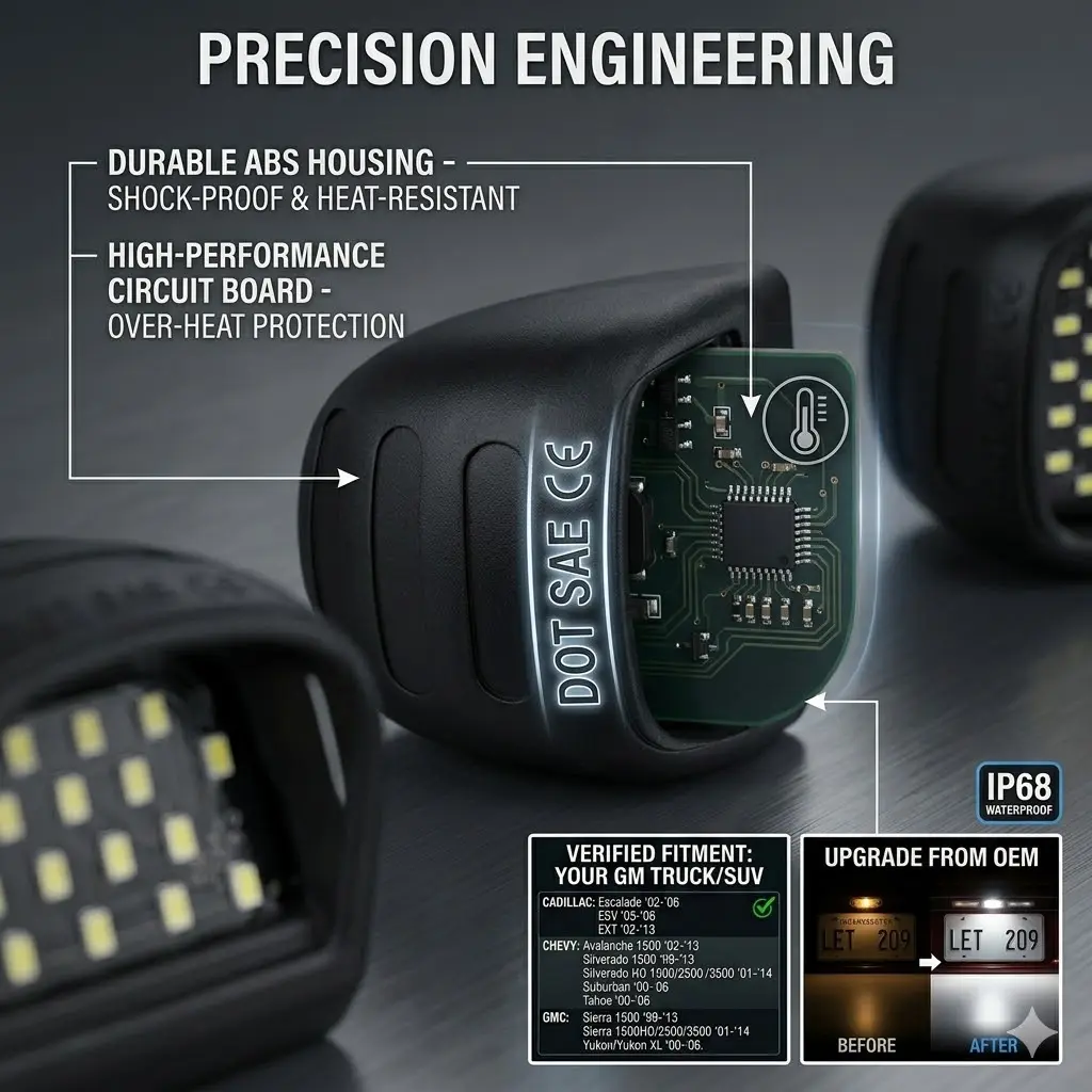 ·ULTRA-BRIGHT VISIBILITY: Equipped with high-power SMD LED chips that deliver 300% more brightness than factory halogen bulbs, ensuring your license plate is clearly visible in total darkness.