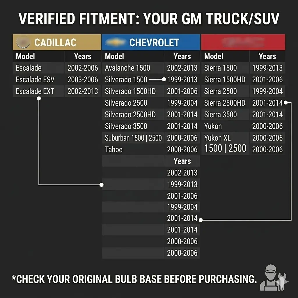 ·UNIVERSAL GM FITMENT: Precision engineered for Chevy Silverado/GMC Sierra 1500 2500 3500 (1999-2013), Tahoe, Suburban, Yukon, Yukon XL, Avalanche, and Cadillac Escalade models.