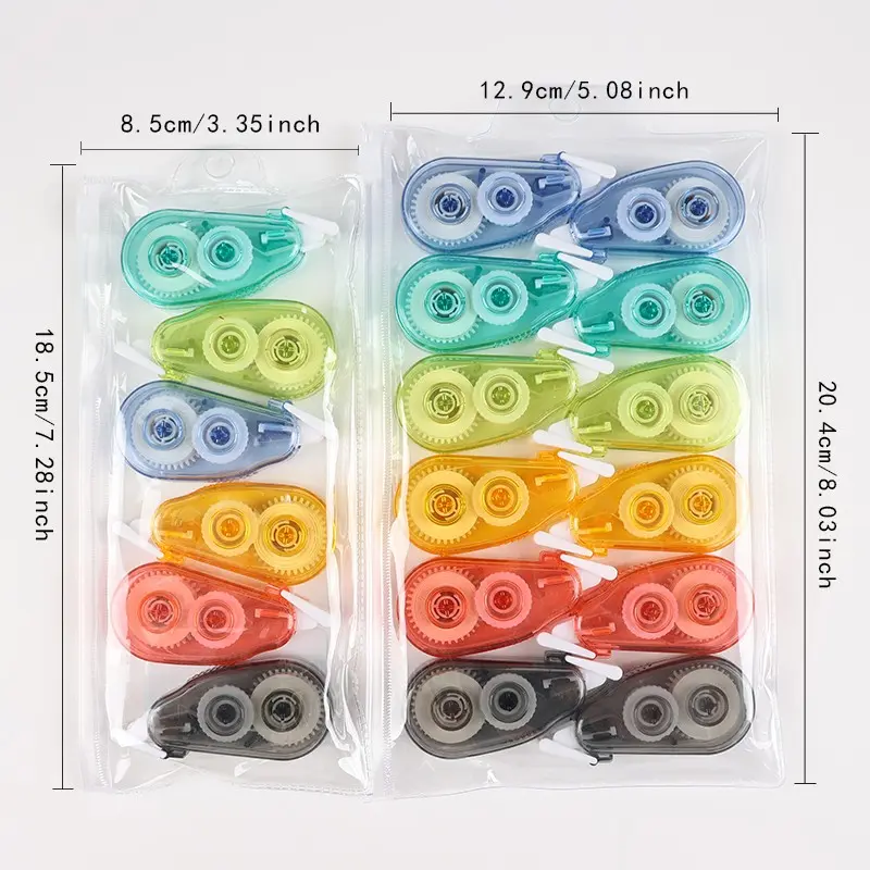6-Piece Large Capacity Correction Tape Set, Transparent Zip Bag, Multiple Colors, Ideal for Office, School, Spell Check, Back-To-School Gift