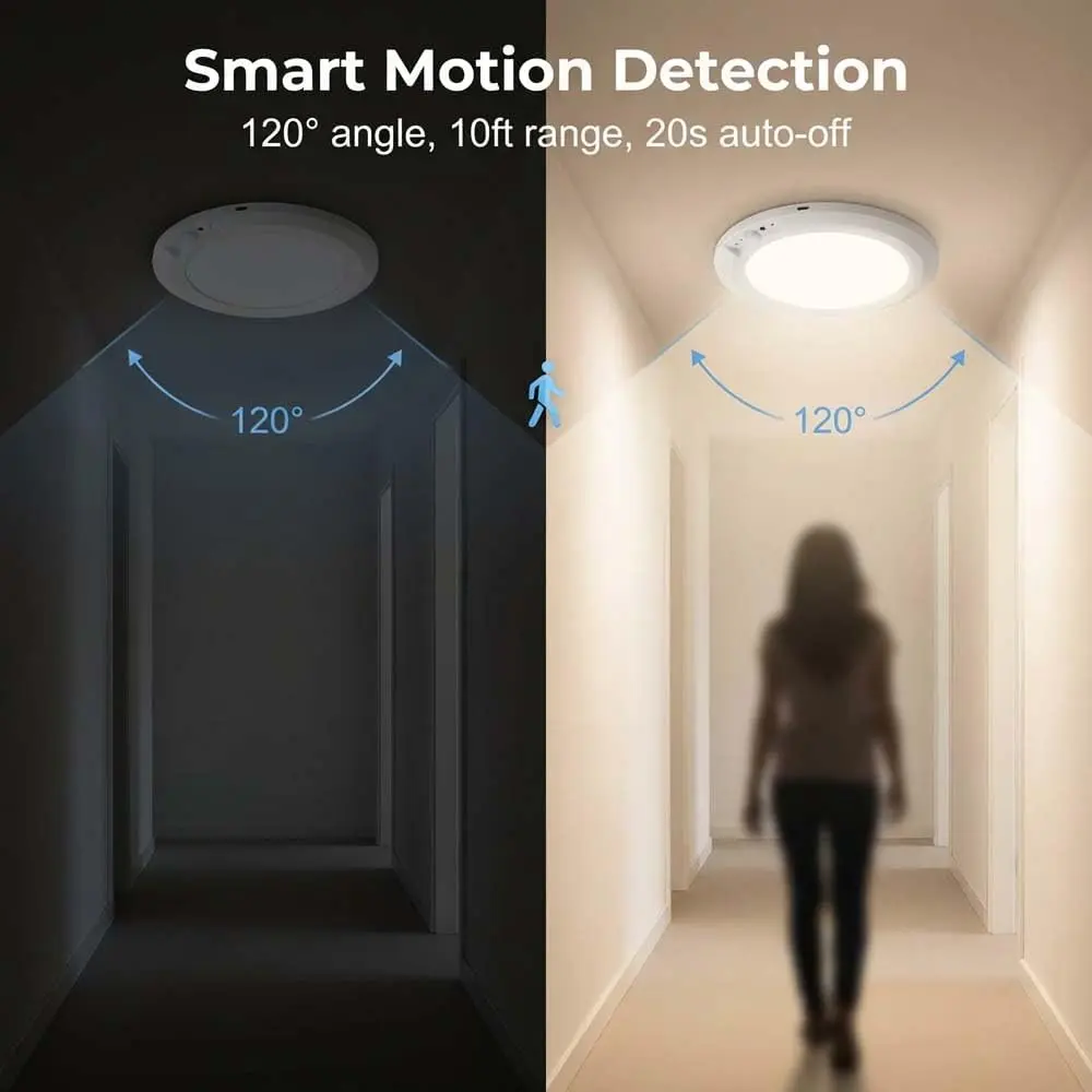 ·👣 Smart Motion Sensor: Detects movement from 9-16 feet away. Light turns on when you enter the space, off 20 seconds after you leave. Save energy without thinking about it.