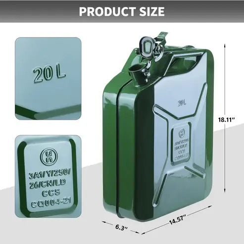 ·【Heavy-Duty Metal Gas Can Construction】Crafted from premium cold-rolled steel, this jerry can resists rust, corrosion, and impact. Unlike flimsy plastic alternatives, our metal gas can delivers lasting durability, making it the reliable fuel can for trucks, tractors, and farm equipment.
