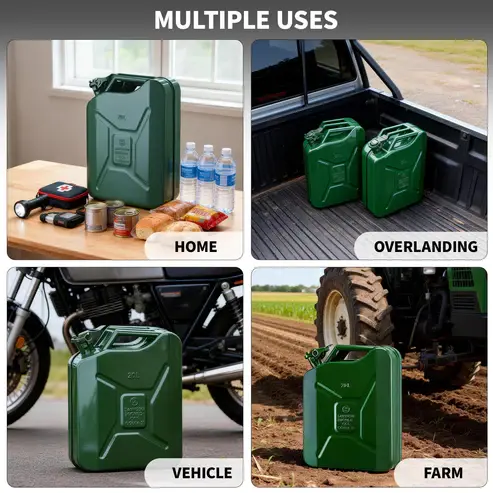 ·【Versatile Gas Container for Home, Farm & Overlanding】From fueling generators during outages to topping off tractors on farm, this metal gas can is built for real-world use. Off-road enthusiasts and homeowners alike trust these jerry cans for gasoline for dependable fuel storage.