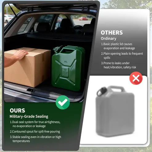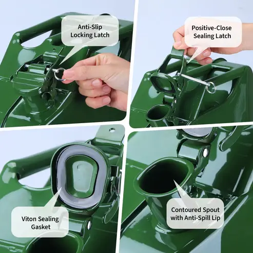 ·【Leak-Proof & Safety-First Design】Engineered with a precision-fit gasket and secure locking mechanism, this fuel can provides a reliable seal to prevent leaks and vapors. Note: this metal gas can is designed for fuel storage only, not for drinking water.