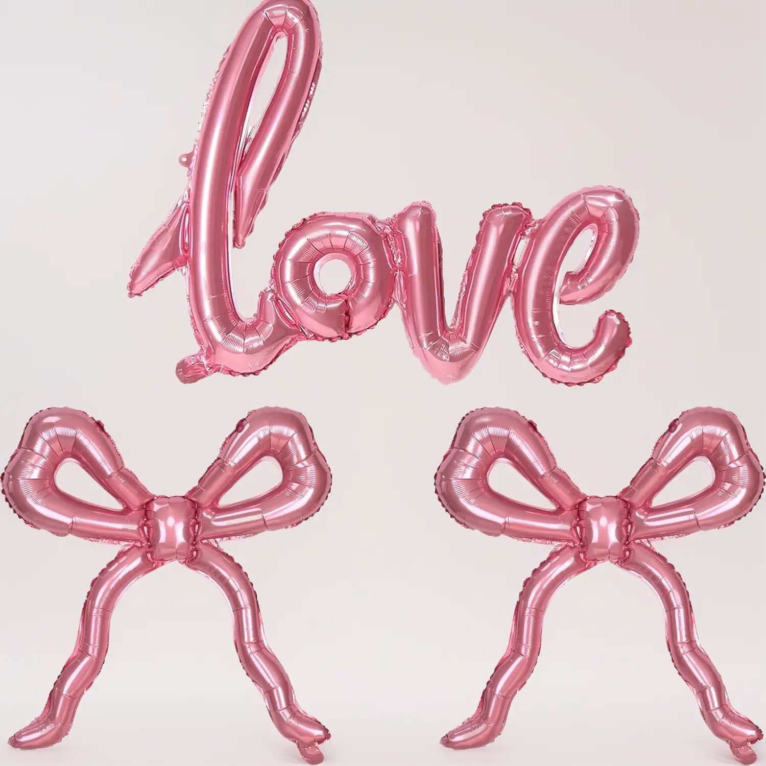 ✨Elevate your celebration with this trendy Pink Love & Bow Balloons Set!🎀