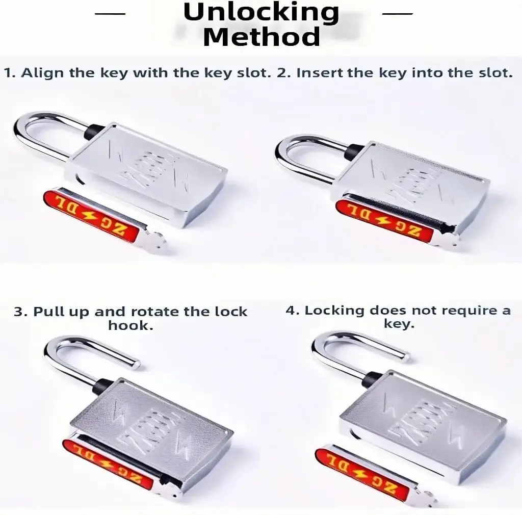 ·Keyless Hole Innovation: Experience next-level convenience with our magnetic padlock featuring a completely keyless design. By eliminating the keyhole, we've removed the entry point for dust, dirt, and tampering—offering a modern, secure locking solution that operates smoothly in any environment.
