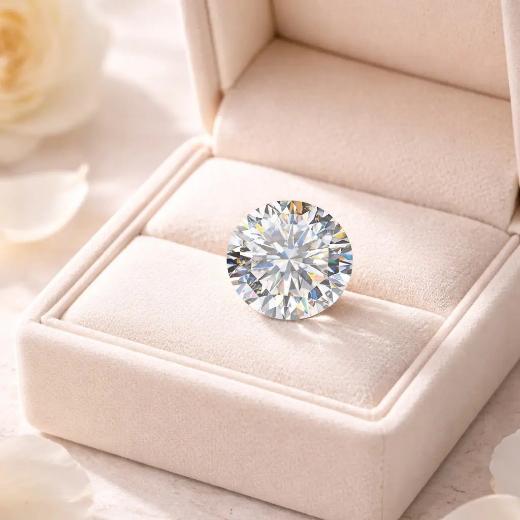 Round untreated diamond and sapphire gemstone, accompanied by a certificate