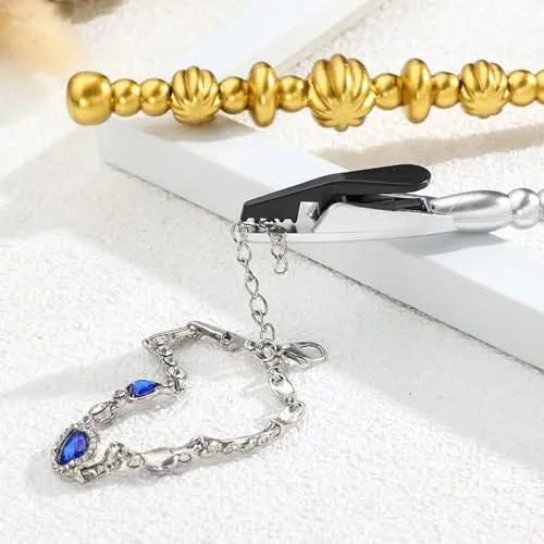 This jewelry helper tool is designed to make fastening bracelets, necklaces, and watches easier and more convenient. It helps hold one end of your jewelry in place, so you can close clasps more easily by yourself.