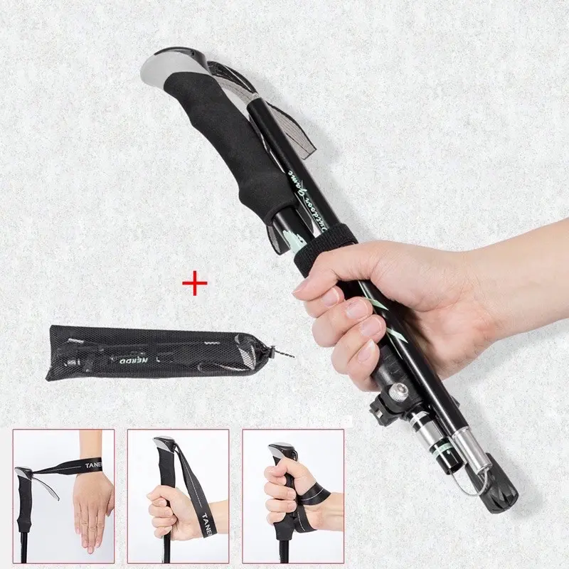 Collapsible Tri-fold Trekking Hiking Poles Carbon Fiber Walking Stick Anti-Shock