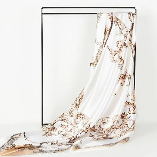 ·women head scarf is made of 100% high quality Polyester, the touch of the scarf is silky and soft just like silk scarf, and looks shiny like satin scarf. The colors of the print scarf are bright and vivid