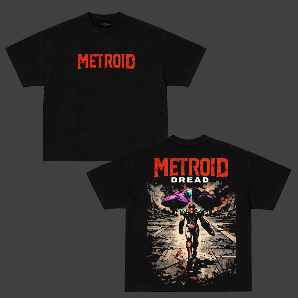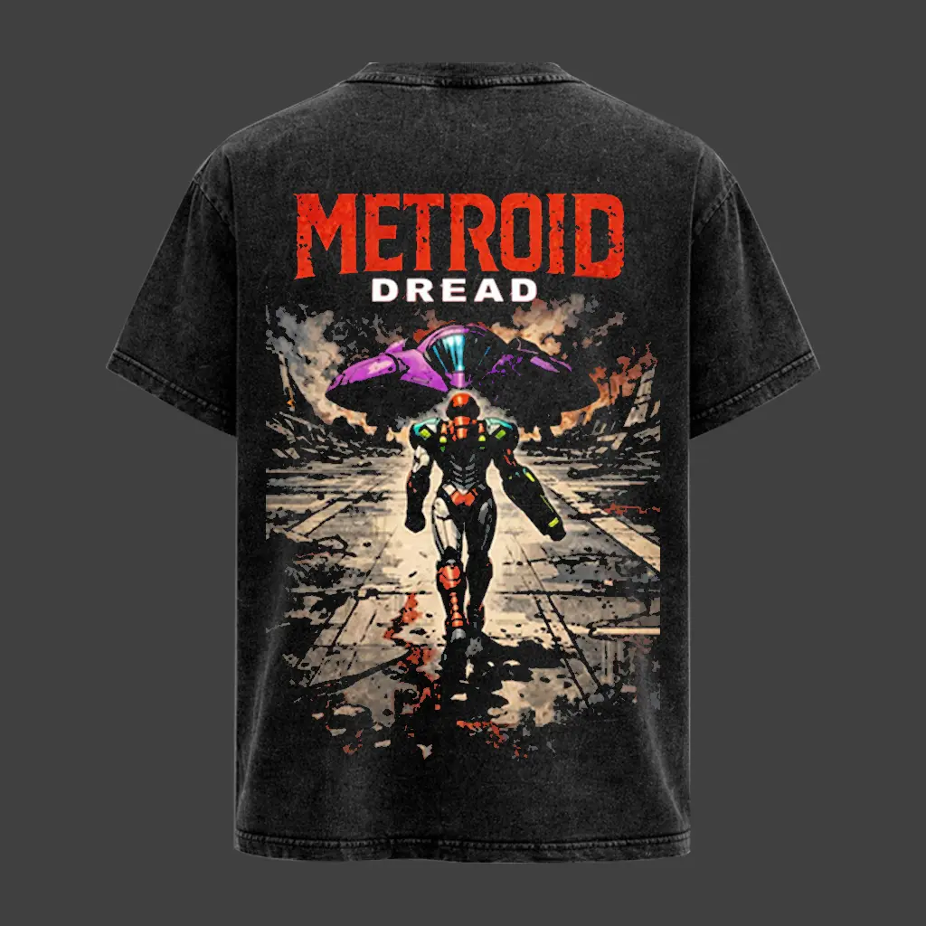 Metroid Graphic Washed Tee, Dread Game Sci-Fi Hunter T-Shirt, Space Warrior Streetwear Shirt, Vintage Oversized Unisex Tee