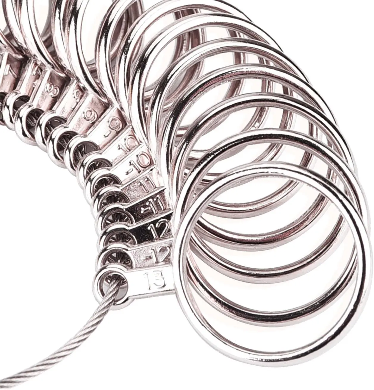 This Stainless Steel Ring Gauge Set is a precise and reliable finger sizing tool designed for accurate ring measurement. It includes a complete range of sizes from 1 to 13 US, along with half sizes, ensuring detailed and exact sizing for different finger dimensions. The set consists of 27 individual pieces, making it suitable for both personal and professional use.
