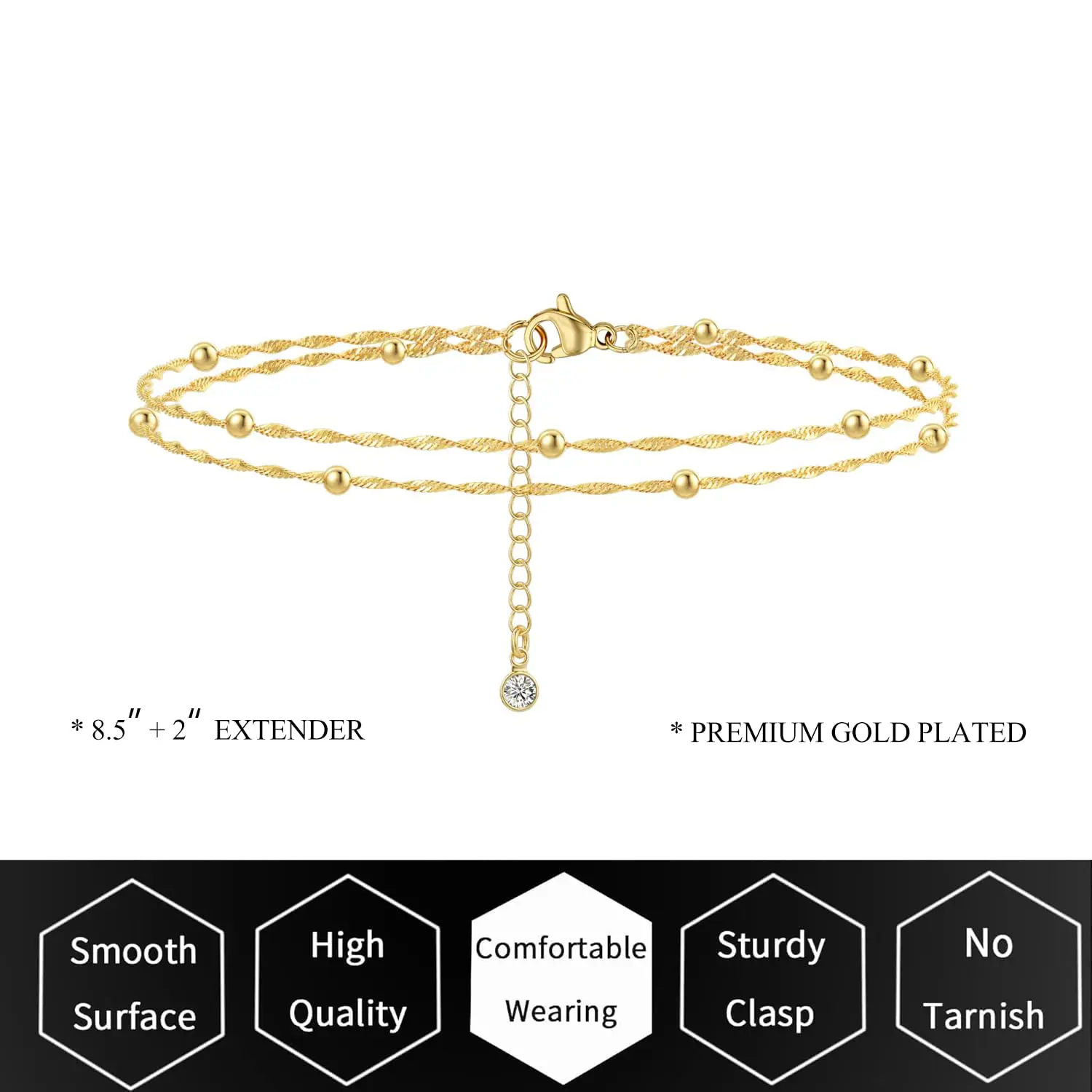 Elevate your summer style with the Loyalove Gold Ankle. This dainty link chain herringbone anklet set is perfect for beachwear. Waterproof design ensures durability. Ideal as a gift for women or Mother's Day.