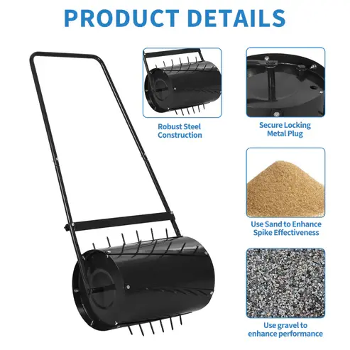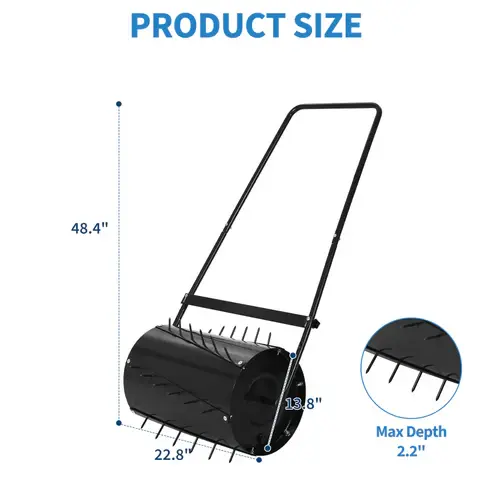 Smooth, Stable & Efficient Operation: Features heat-treated spike tines, a built-in scraper bar, and anti-leak sealed plug, reducing clogging, bouncing, and lawn damage while delivering consistent rolling and aeration results.