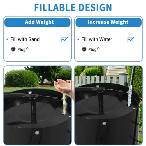Heavy-Duty Steel & 13 Gallon Capacity: Built with durable steel construction and a large 13-gallon (46L) drum, fillable with water or sand to increase weight, ensuring deeper soil penetration, stable rolling, and long-lasting performance.