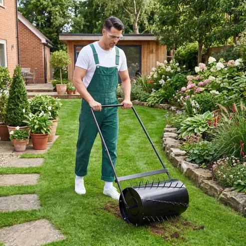 2-in-1 Lawn Roller & Spike Aerator: Combines lawn rolling and soil aeration in one tool, effectively flattening uneven turf while penetrating compacted soil to improve air, water, and nutrient absorption for healthier grass growth.