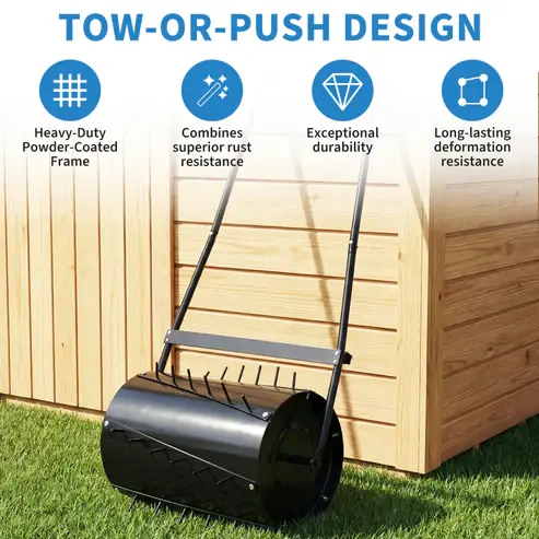 Smooth, Stable & Efficient Operation: Features heat-treated spike tines, a built-in scraper bar, and anti-leak sealed plug, reducing clogging, bouncing, and lawn damage while delivering consistent rolling and aeration results.