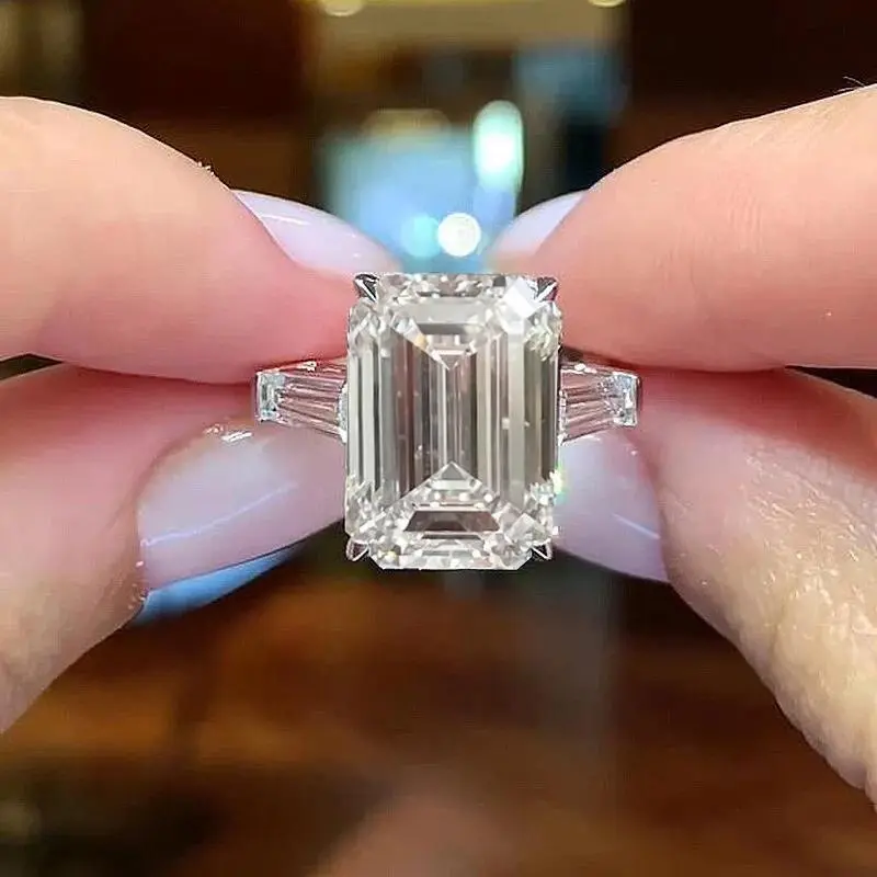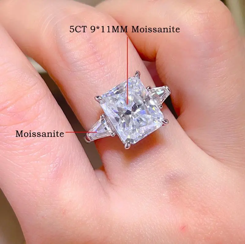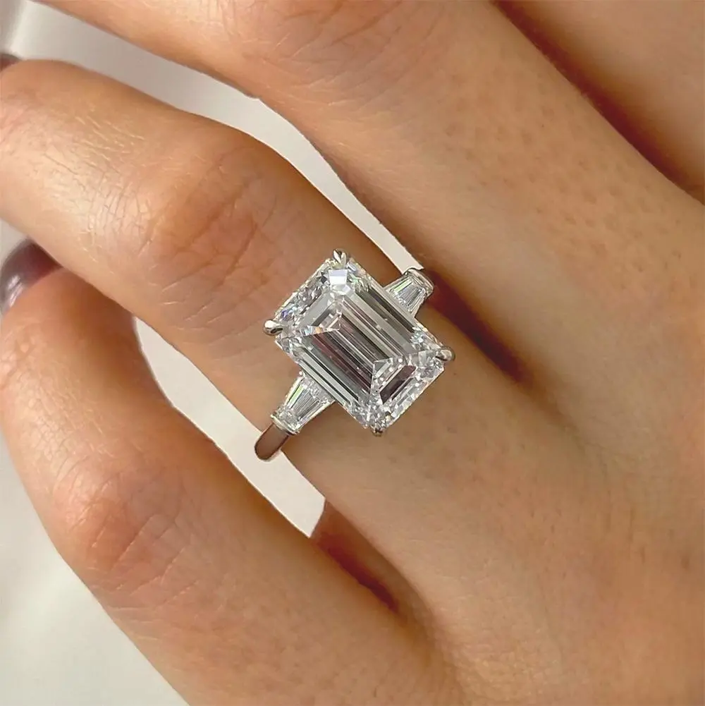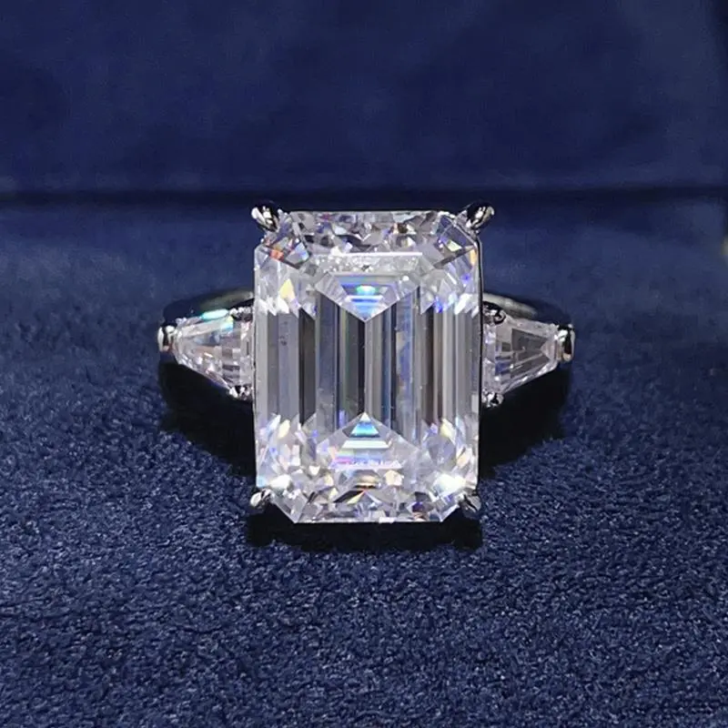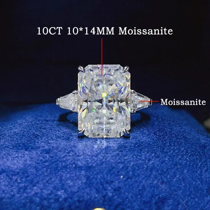 5CT 10CT Emerald Cut Full Moissanite Three Stone Ring
