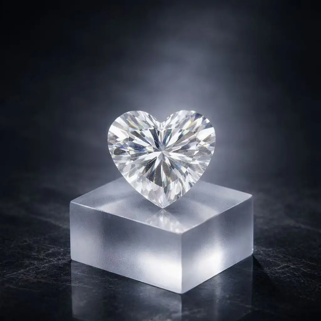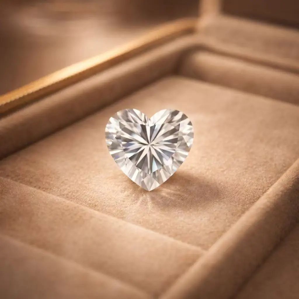 Heart-shaped natural diamond and sapphire gemstone, accompanied by a certificate