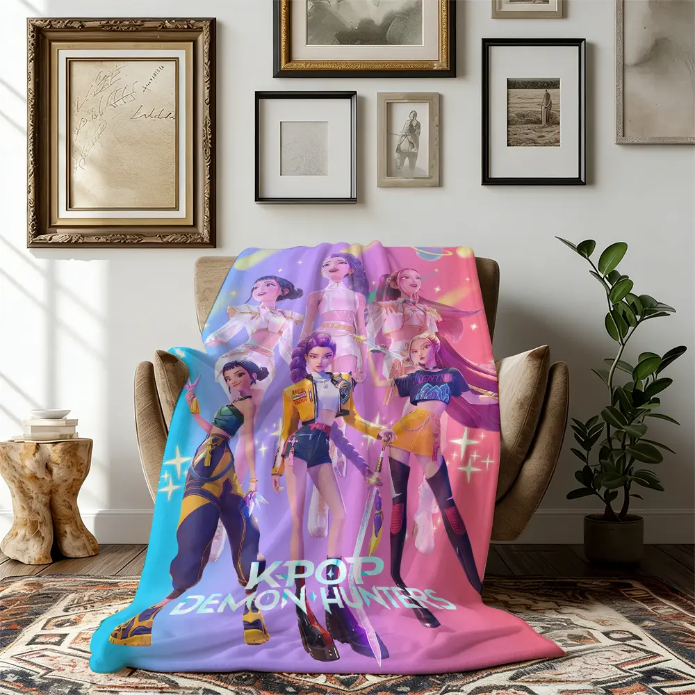 Countdown Sale! Huntrix x K-Pop Demon Hunters | Soft Flannel Blanket for Sofa, Bed & Office | Perfect Gift for K-pop & Anime Lovers cozy flannel blanket A gift suitable for fans, friends and children Suitable for all four seasons