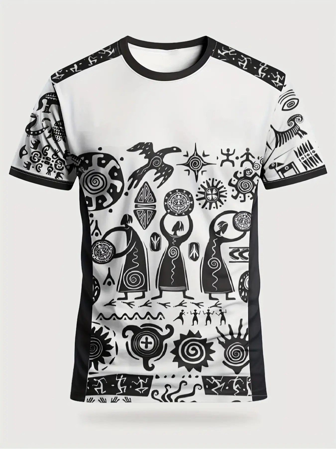 Men's Mexican Aztec Tribal Symbol Sport T-Shirt, Ethnic Street Round Neck Short Sleeve Top, Loose-Fit Geometric Pattern, All Seasons