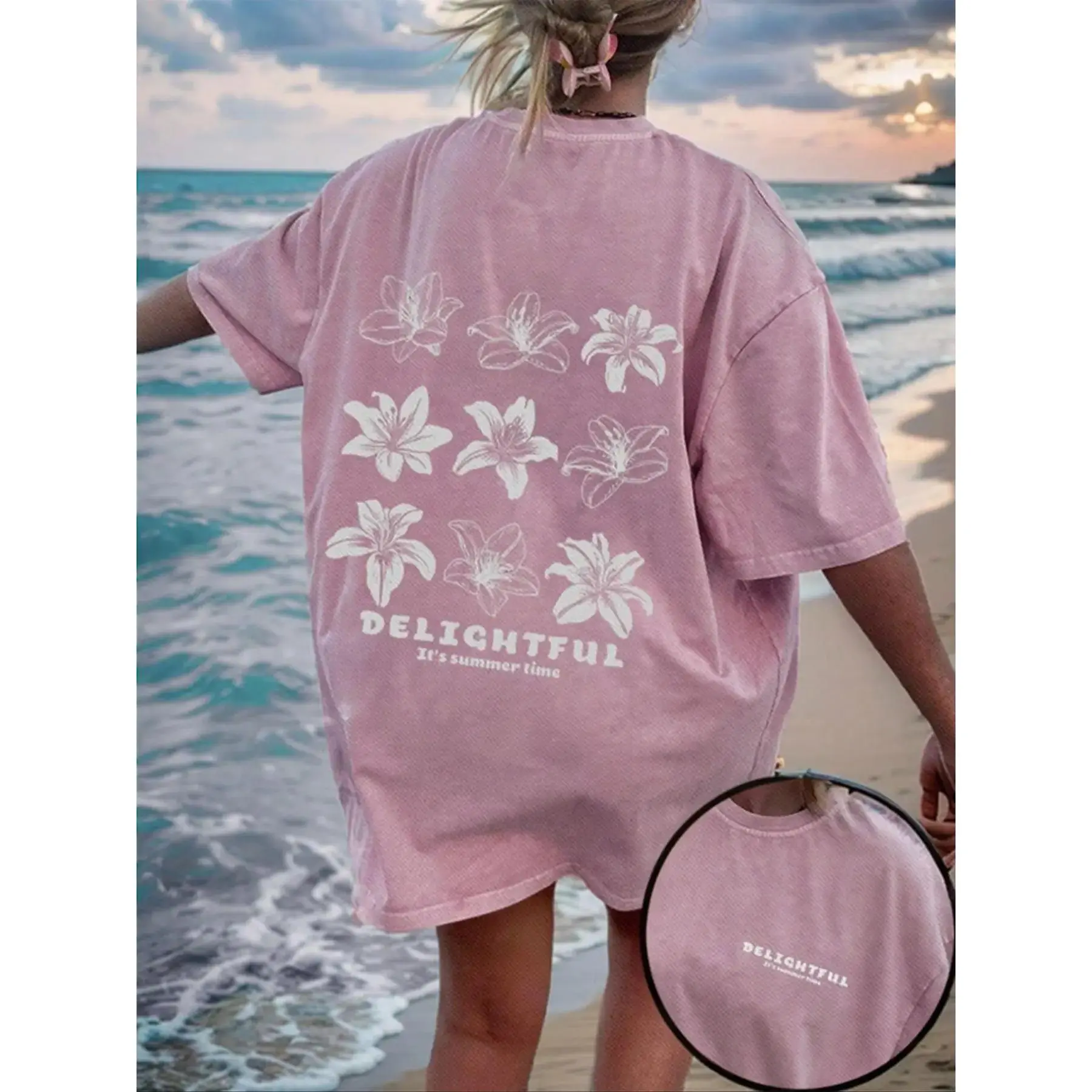 5. Floral & Letter Print Round Neck Tee, Casual T-shirt, Ladies Summer Outfit for Daily Wear