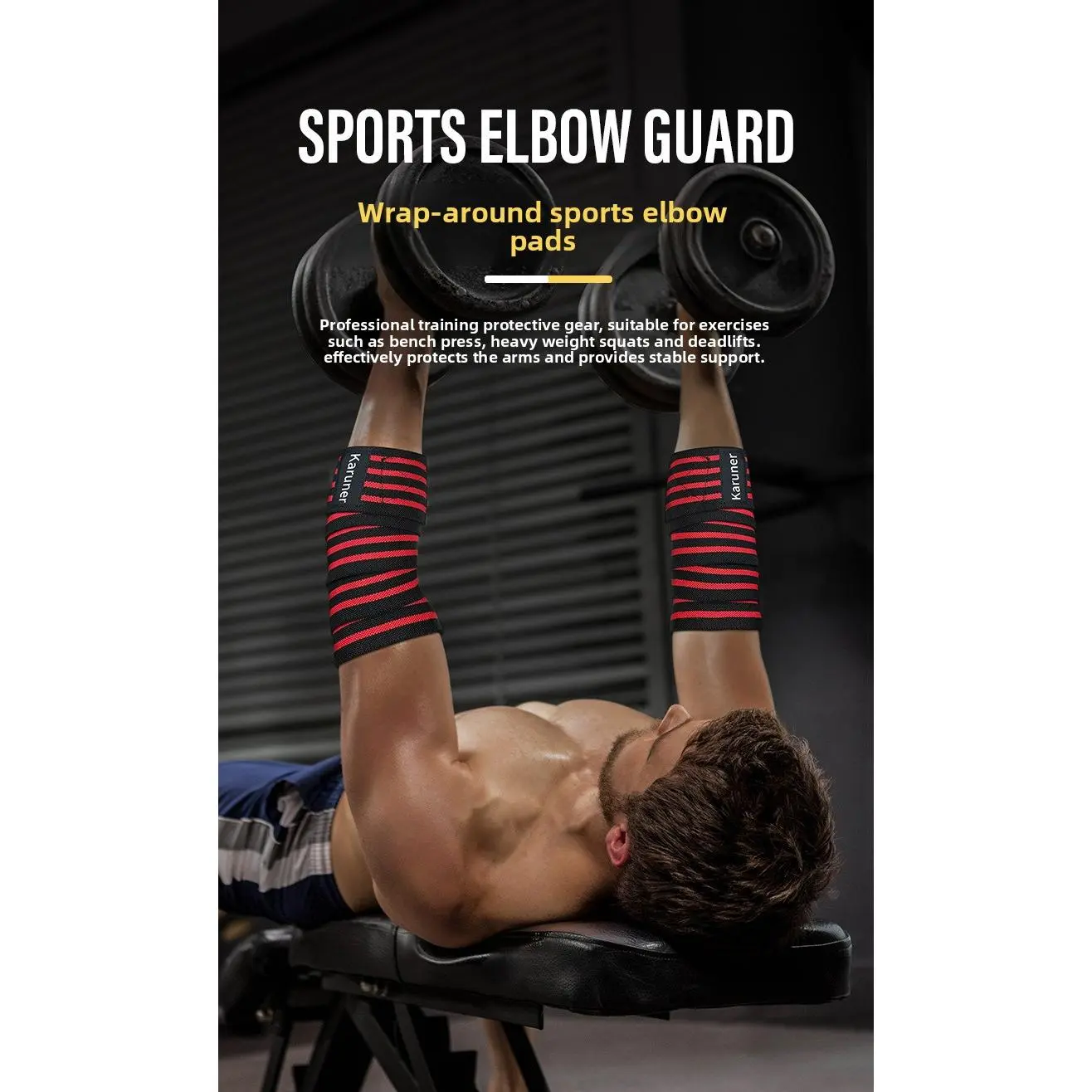 This compression bandage wrap is designed for elbow support during weightlifting training. It offers breathable arm support, ensuring comfort and protection. Perfect for fitness enthusiasts, it acts as a bench press anti-collision elbow protector. Ideal for those seeking arm protection during intense workouts.