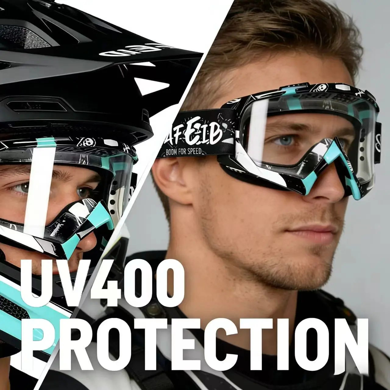 Enhance your riding experience with our Motocross goggles, perfect for motorcycle enthusiasts and outdoor adventurers! Designed for high-performance off-road riding, these goggles offer UV400 protection, scratch-resistant, and anti-fog coatings. Ensure clear visibility in all weather conditions. The wide, adjustable, highly elastic strap with anti-slip silicone fits all helmet sizes securely and comfortably. Soft foam padding blocks debris, wind, and sand, protecting your eyes.