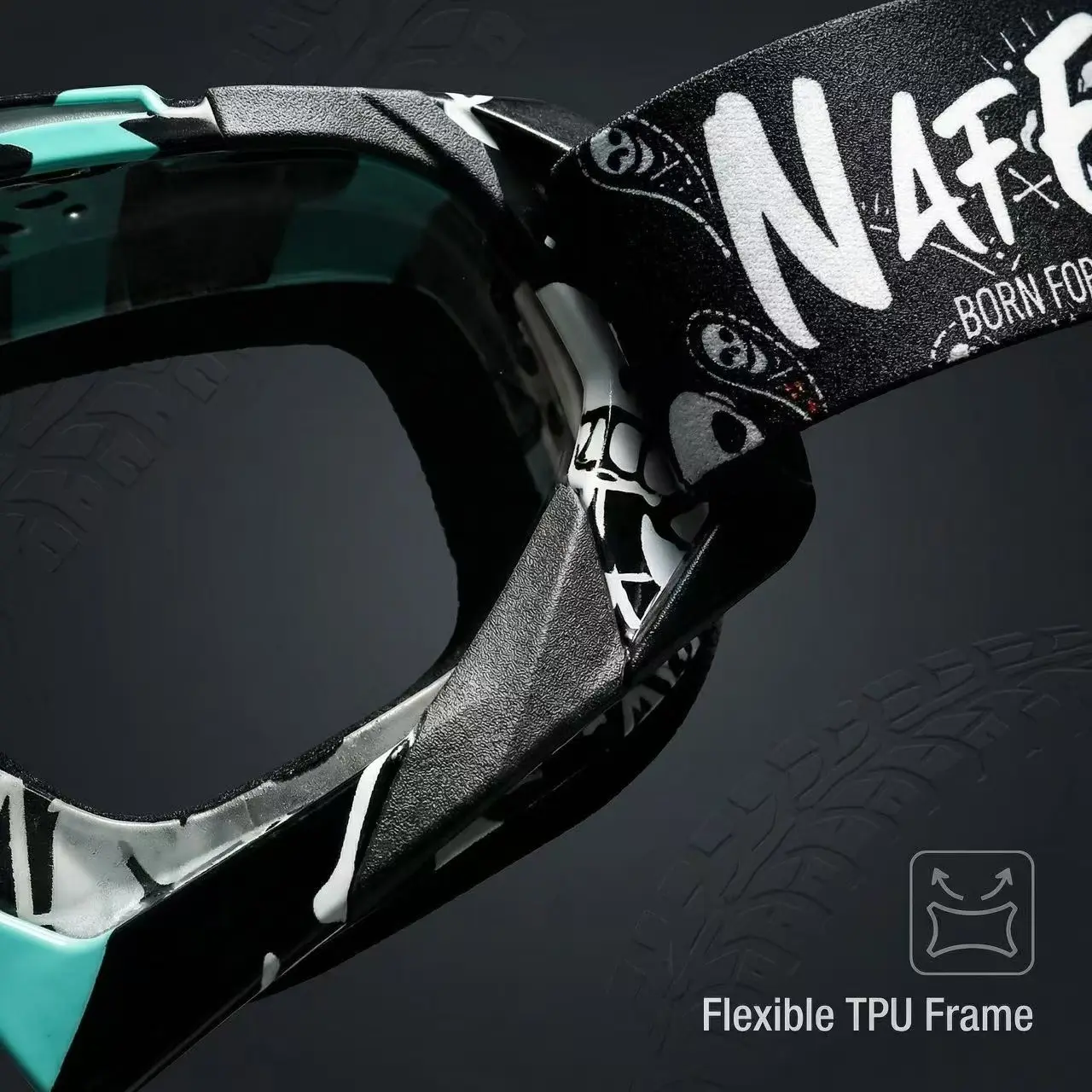 Ideal for motocross, motorcycle riding, cycling, skiing, climbing, ATV/UTV, etc. The stylish skull pattern with "Born for Speed" slogan helps you stand out. Package includes 1 Pair of Motocross Goggles.