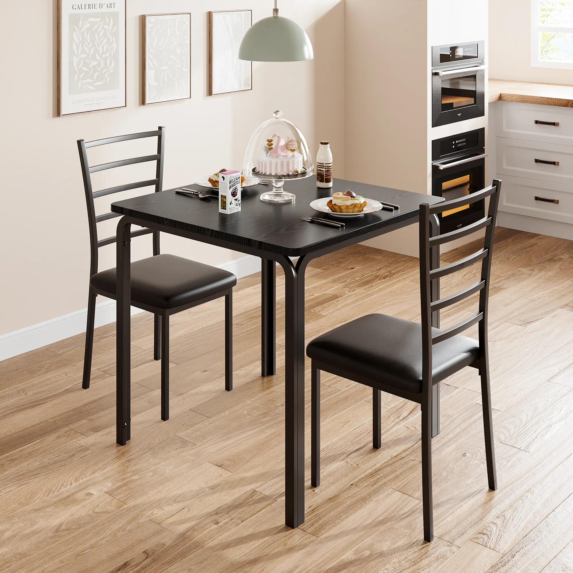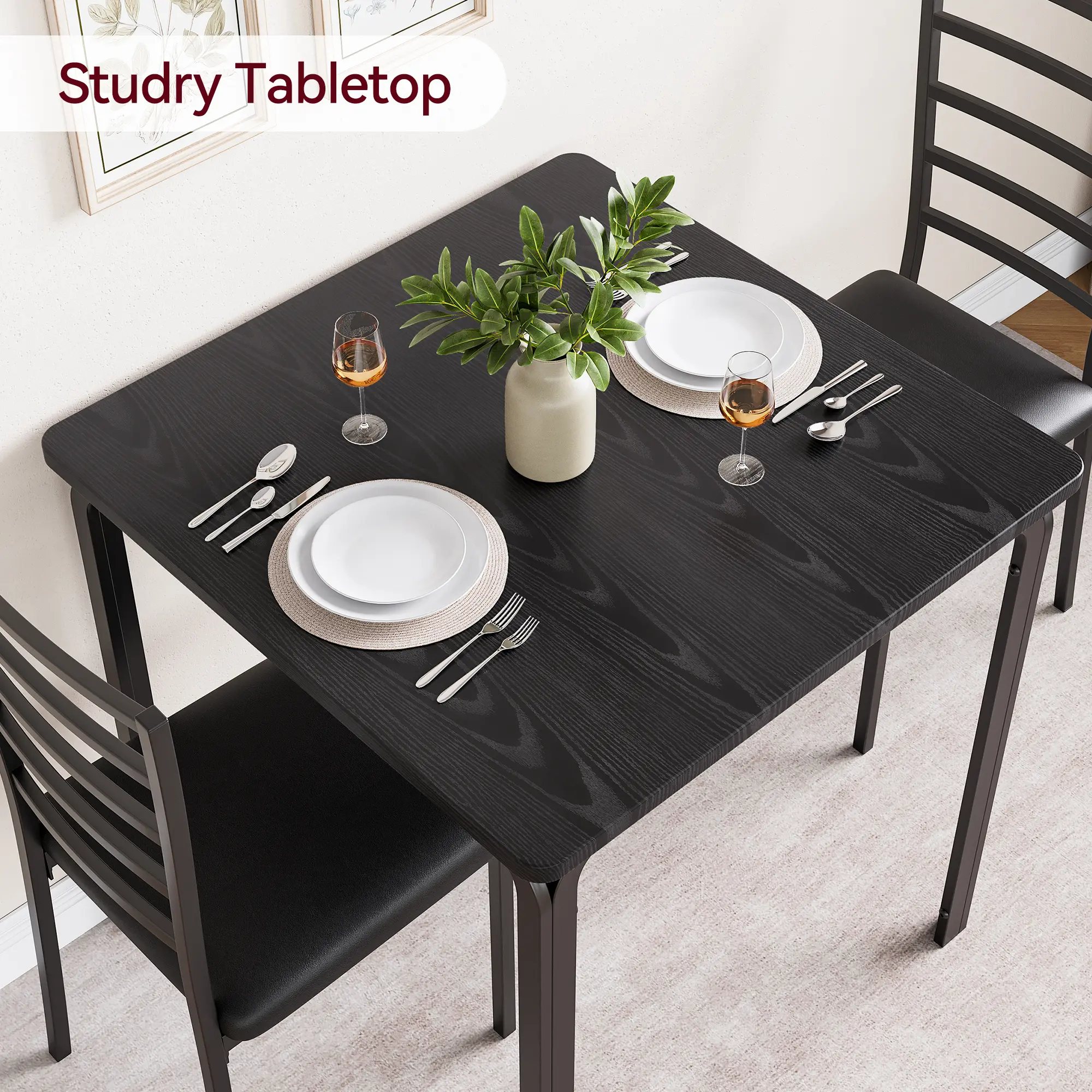 ·Space-Saving Design: Both chairs tuck neatly under the table to maximize your floor space, perfect for breakfast nooks, kitchen corners, or small dining rooms.