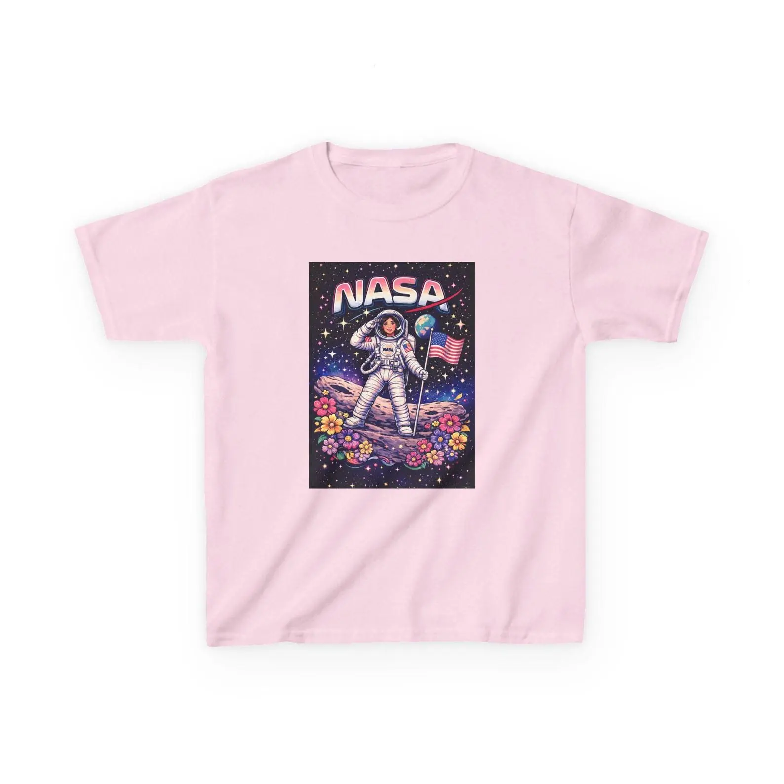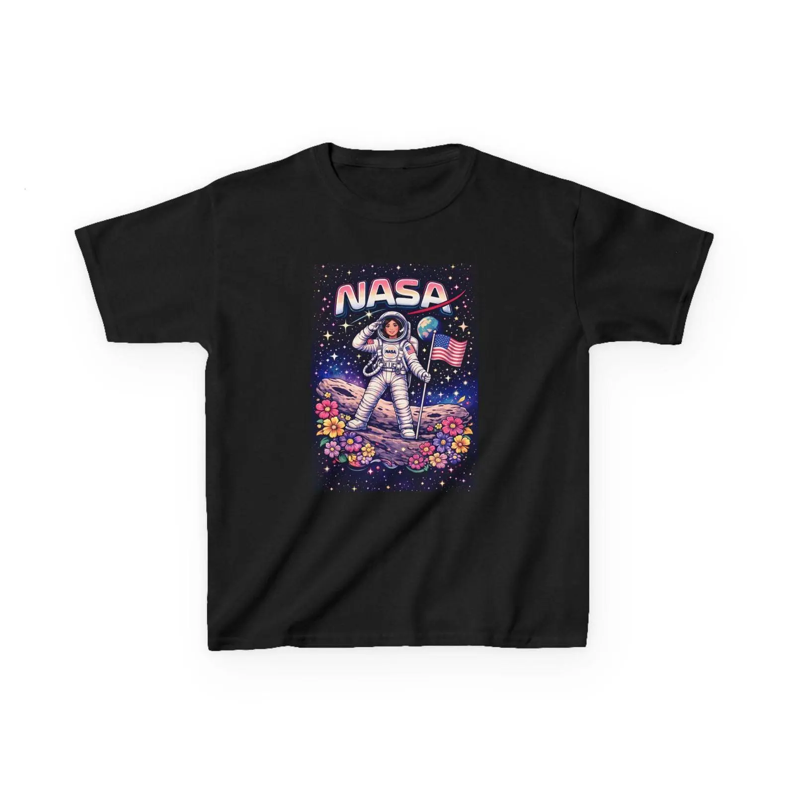 [Sale Up To 40%] NASA Astronaut on Floral Moon Baby Tee, Space Explorer Y2K Tee