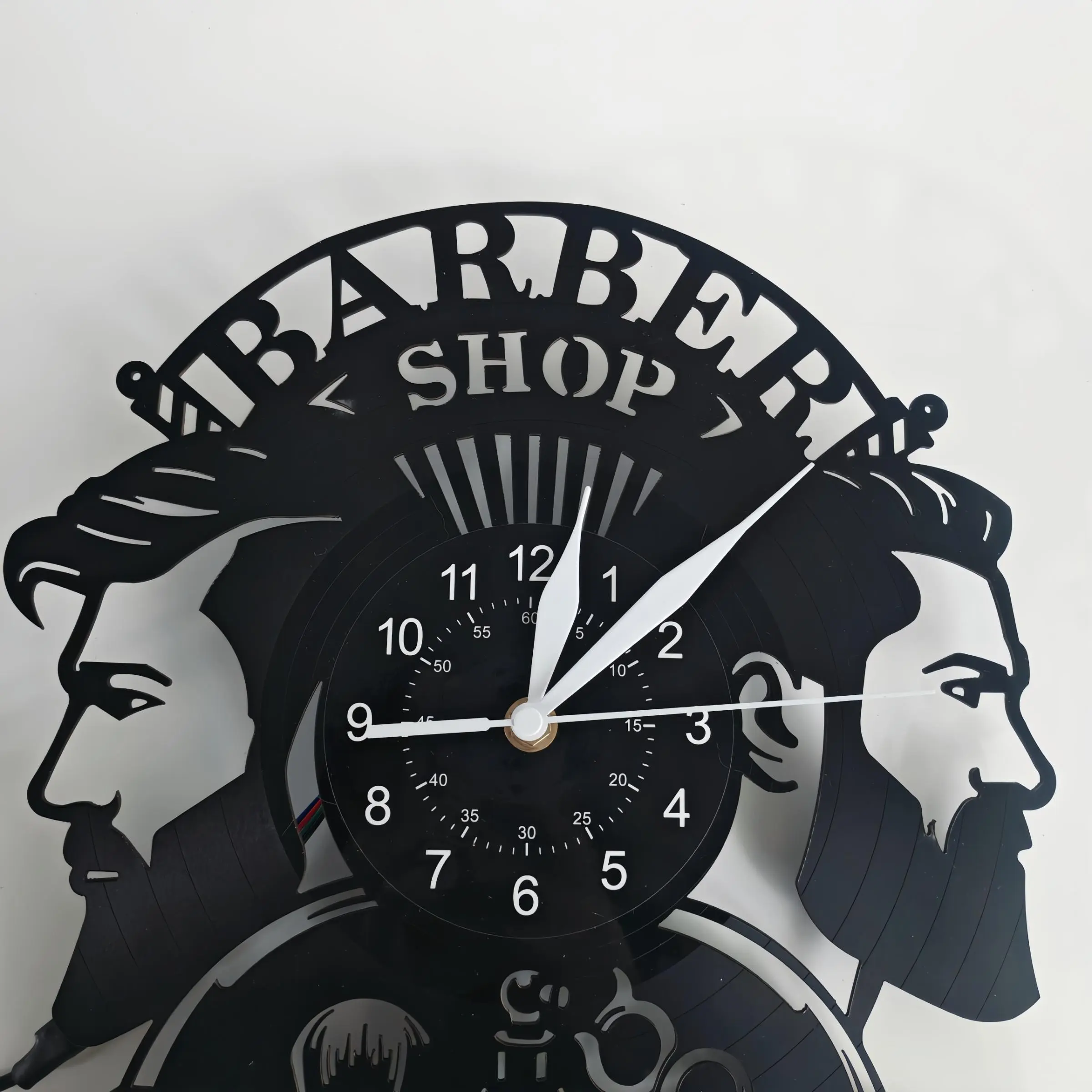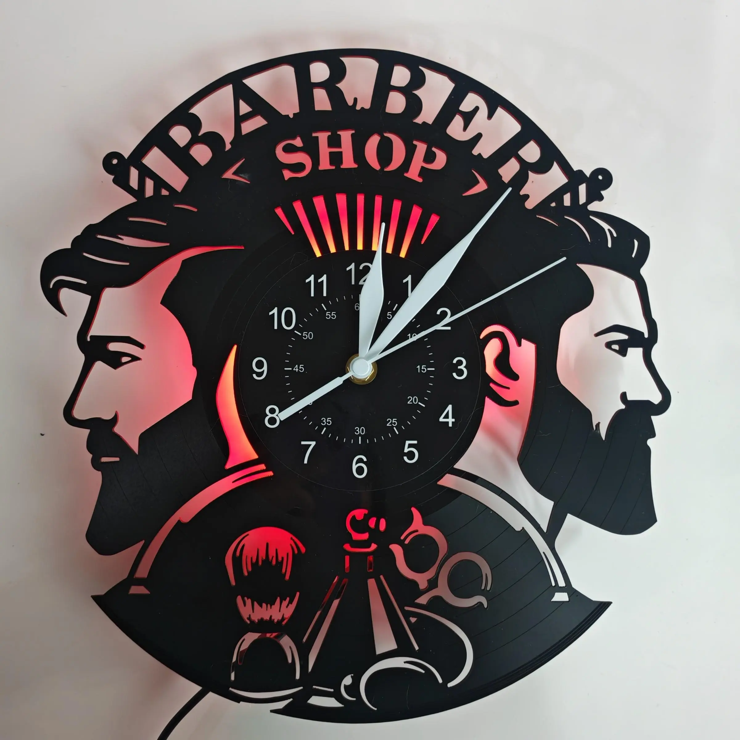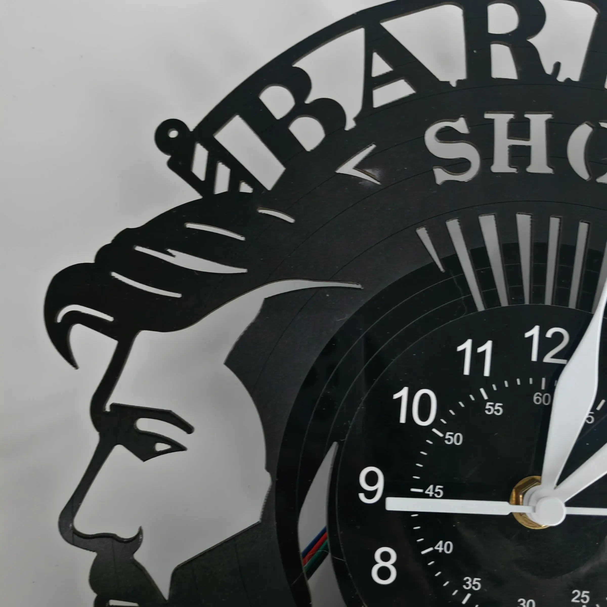 Barber Shop Theme Vinyl Record Wall Clock, Creative Decor for Salons, Clubs, Bedrooms, Unique Gift for Barbers and Hairdressers
